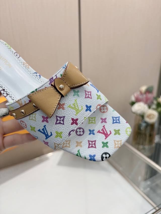 工厂P批P: 、 代购级 、Louis Vuitton 2025官网早春系列!完美楦型、 新品拖鞋、官网同步更新 Lv五金 “Logo”“蝴蝶结”饰以点缀更调皮、细节感拉满、效果视觉盛宴难以掩饰Lv的优雅气质刚刚好、上脚舒适好穿、 新原版倒模楦型,极致1:1形体,做工精致、进口高端面料呈现出精致质感! 面料:进口小羊皮、牛漆皮 老花 牛仔布 内里优质柔软羊皮里、 垫脚:进口山羊皮、 1.5层皮包跟 意大利真皮大底 码数:34-41 34.40、41、定制不退不换