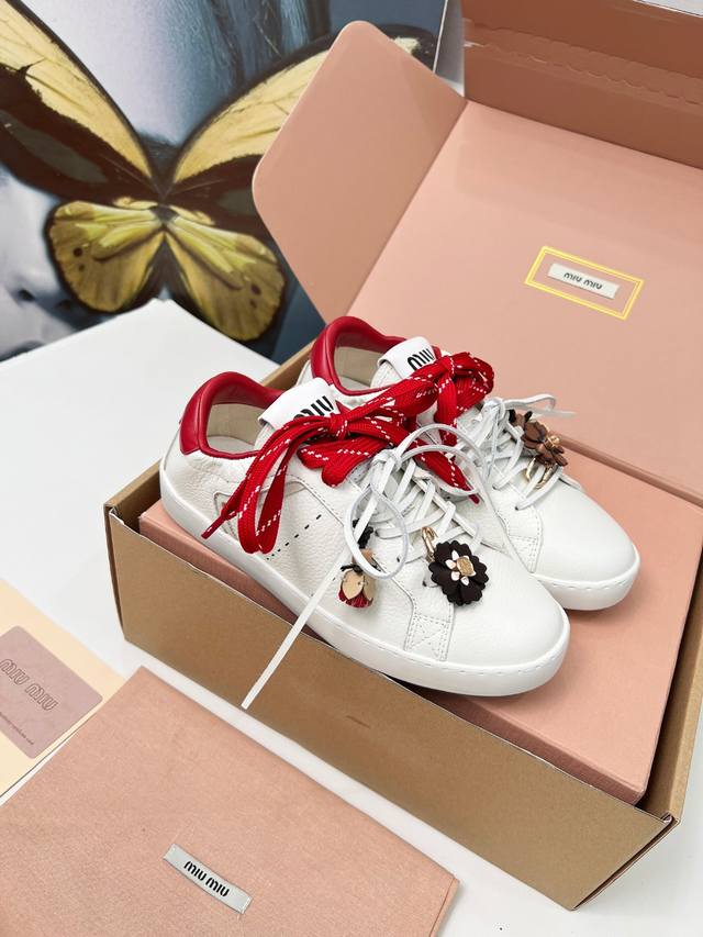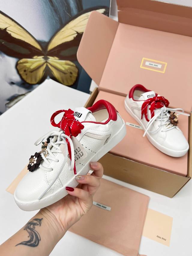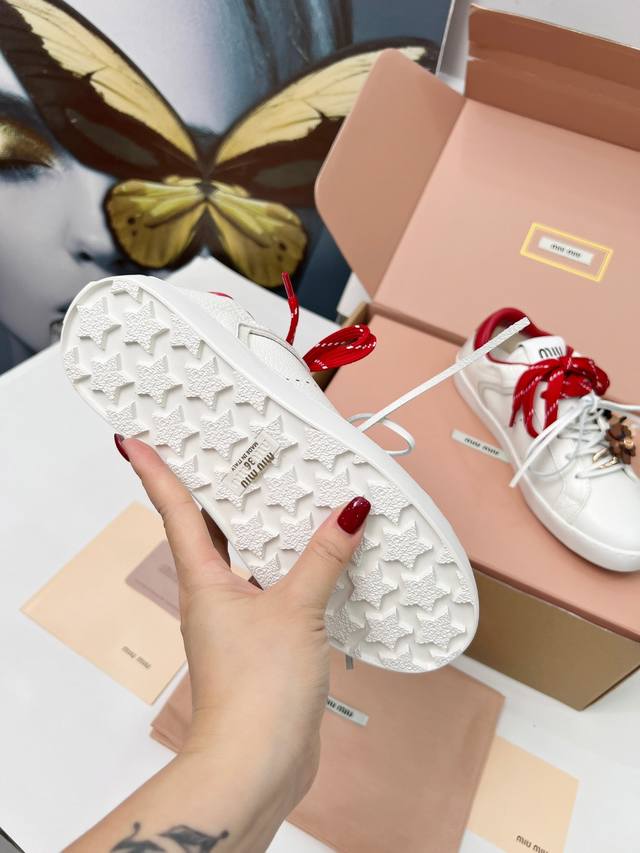 带配饰 Miu Miu 25Ss 新款英伦风小白鞋 此刻挚爱的概念,多元对撞,传达现代风格~ 怎么穿都好看今夏时髦精最爱 上脚超级舒服 码数:35-40 34,