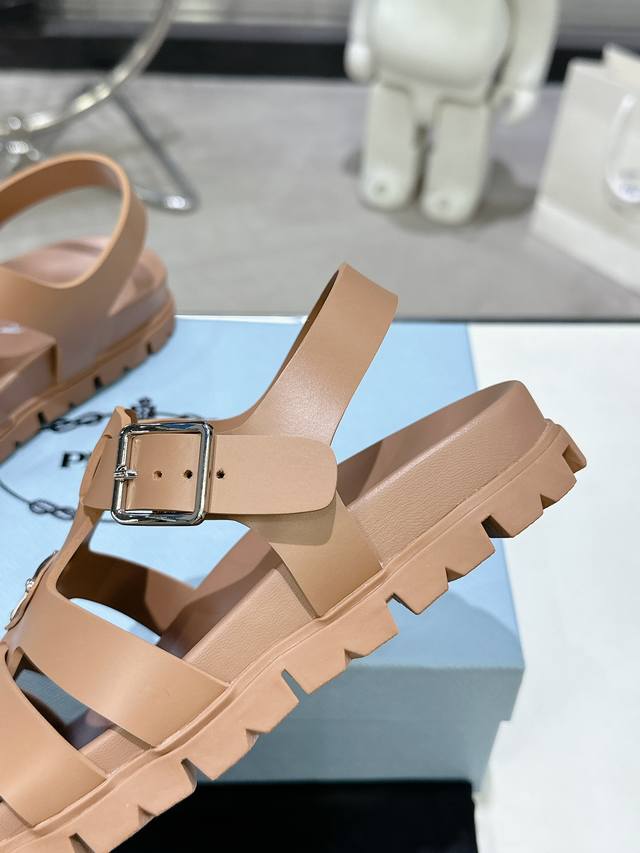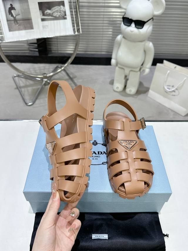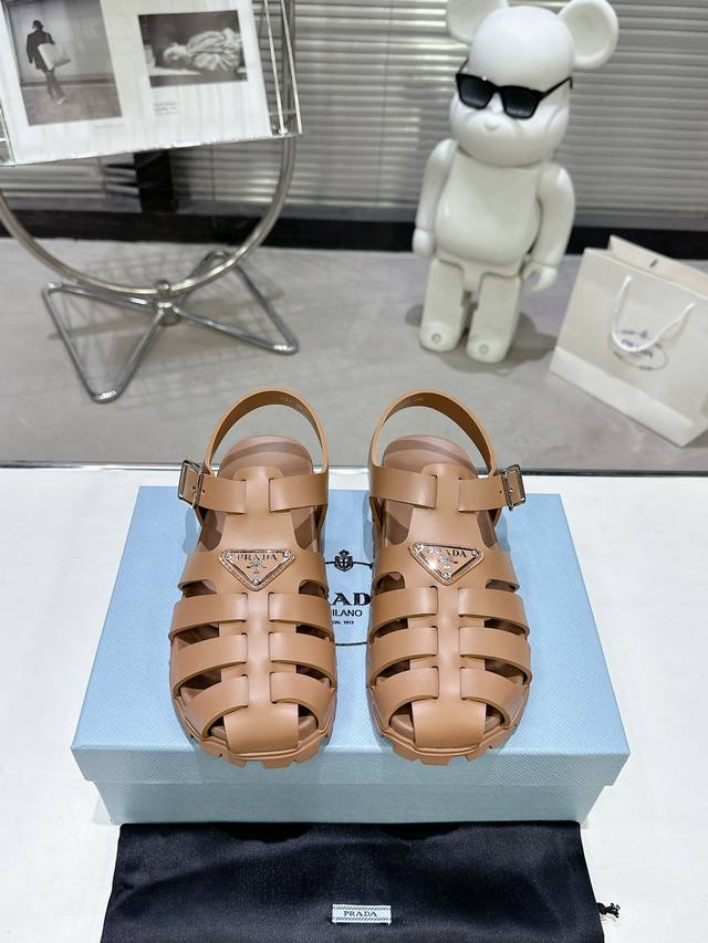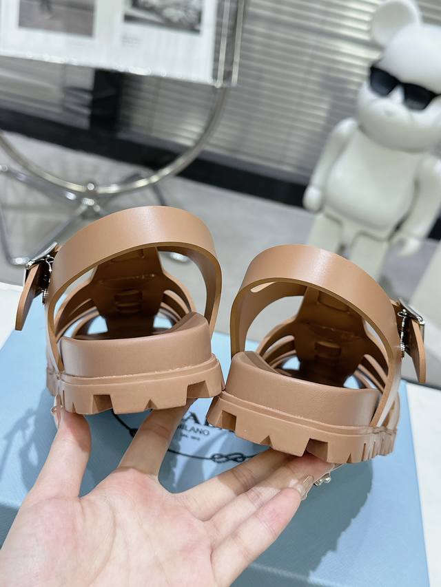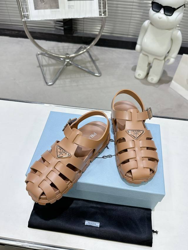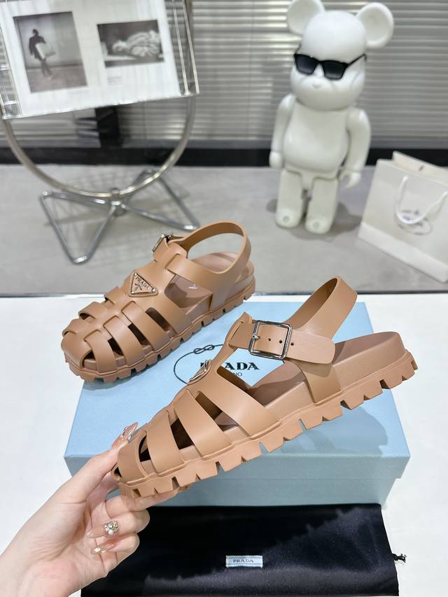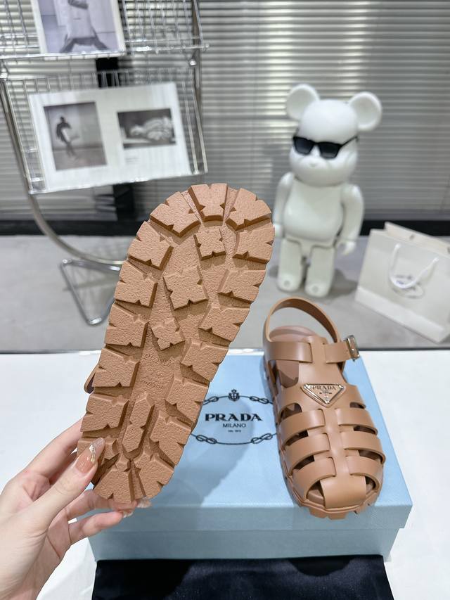 / 平底款 Prada 普拉达 春夏新款凉鞋系列 经典三角扣猪笼凉鞋 经典升级 舒适度与时髦度并存 圆头设计搭配不同风格需求 鞋面:原版定制材质切 羊皮 垫脚 大底