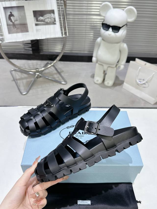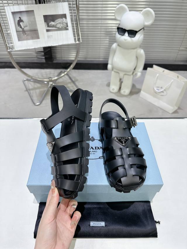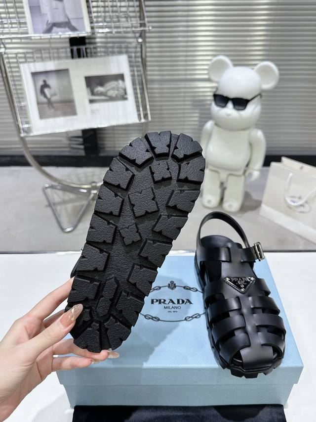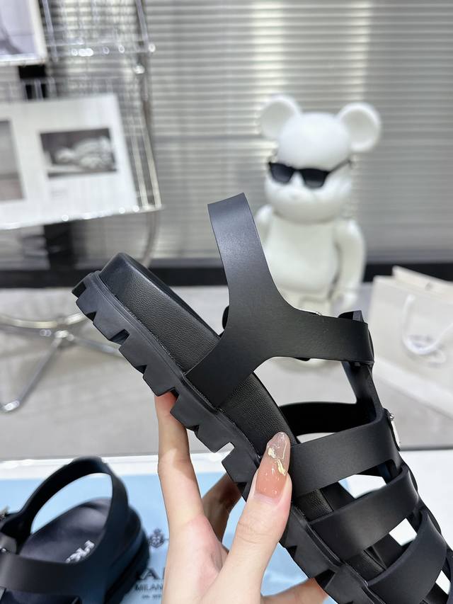 Prada 普拉达2025春夏新款凉鞋系列 罗马厚底凉鞋 最新走秀款,经典升级 舒适度与时髦度并存...