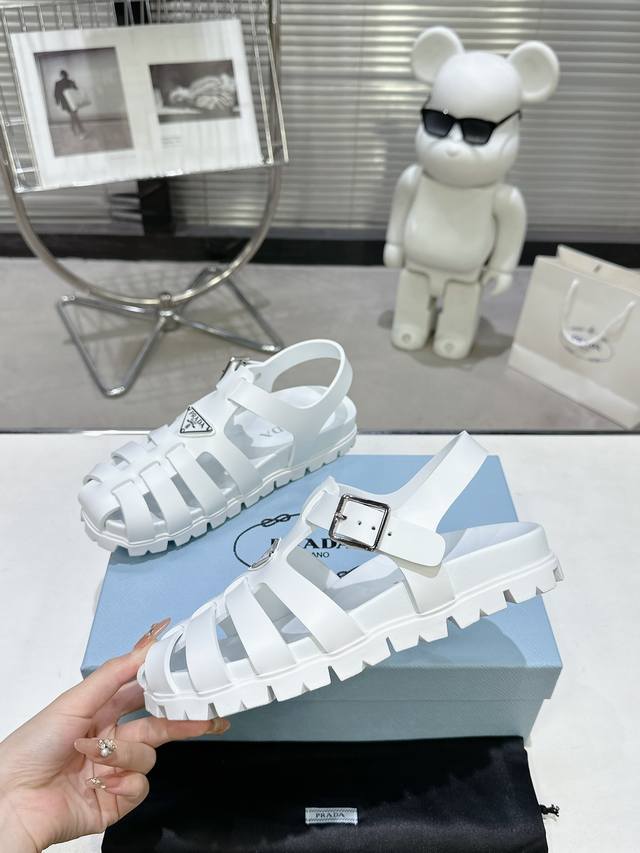 Prada 普拉达2025春夏新款凉鞋系列 罗马厚底凉鞋 最新走秀款,经典升级 舒适度与时髦度并存...
