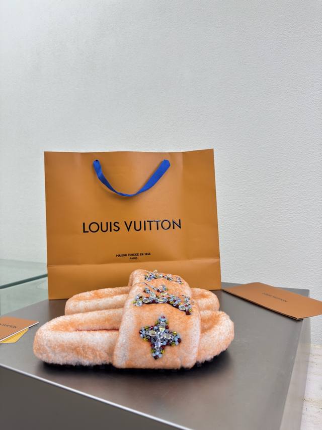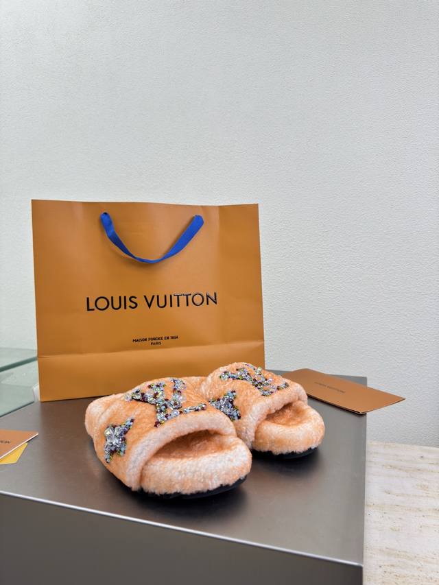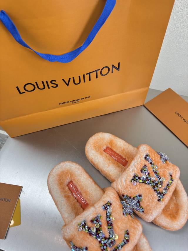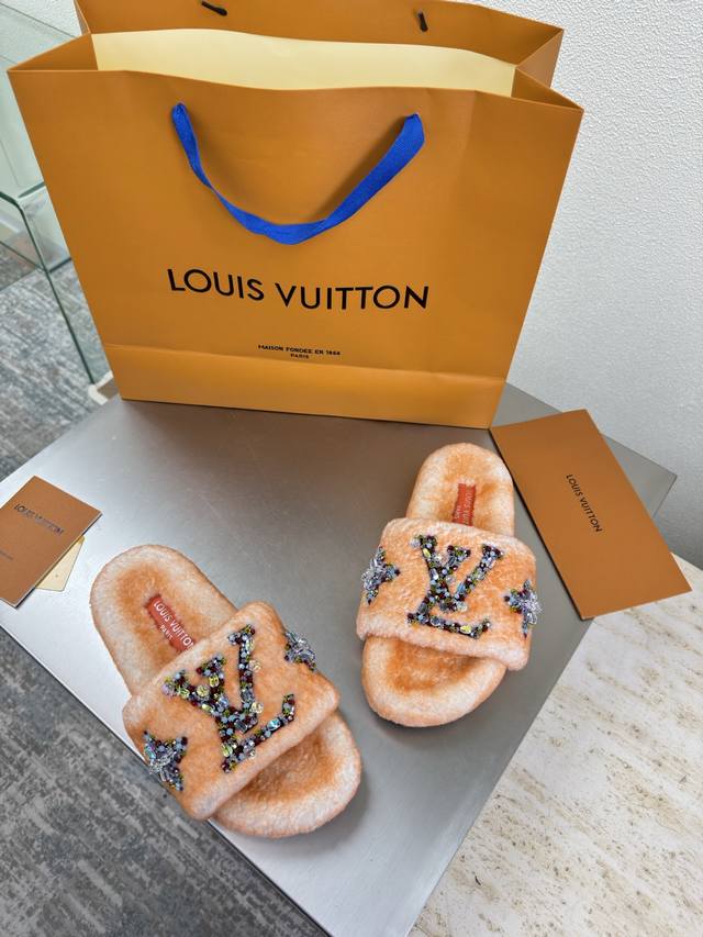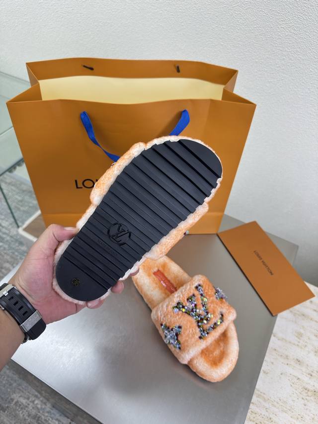 Louis Vuitt On 经典家居拖鞋 水貂毛材质,高级感拉满 轻薄舒适,真水貂,触感无与伦比 顶级精品35-42 40.41.42订做