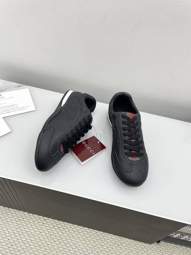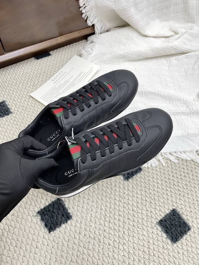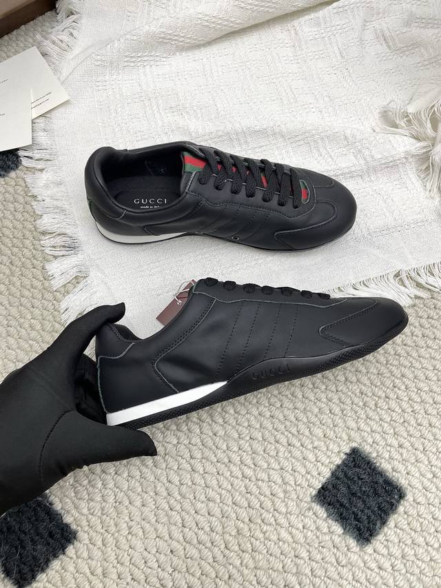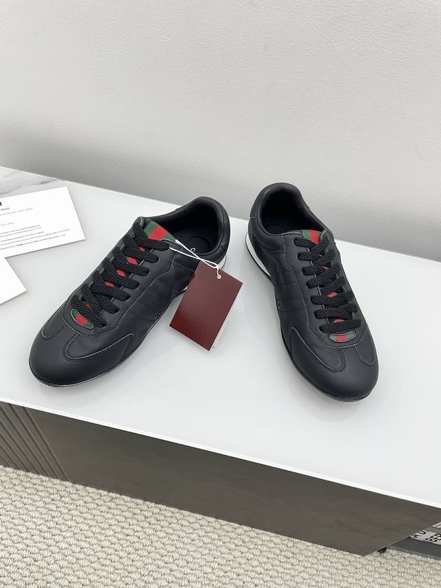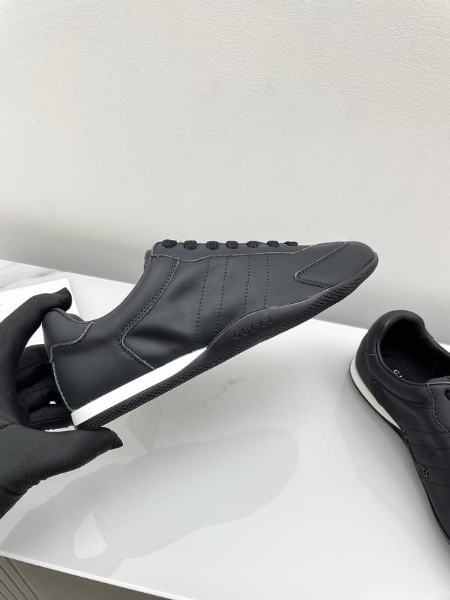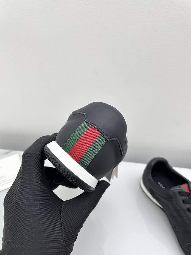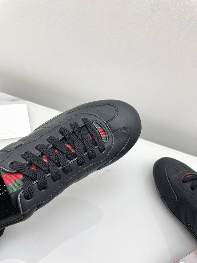 情侣款 带飞机盒 Gucci古驰Shift系列 情侣款 复古 德训鞋 休闲 运动鞋 原版购入开发 做货 Gucci Shift系列全新上市,轻盈设计焕新诠释运动风尚。利落廓形更添自在本色,行动间彰显精致质感。织带细节宛如一道延绵不绝的饰带贯穿于整个设计,侧边缝线细节增添点睛之笔 面料: 原版定制进口头层牛皮 内里: 原版定制柔软羊皮里 大底: 原版开模防滑Tpu材质 底厚: 2Cm Size: 女款35-40 男款39-45 女40 男45定做