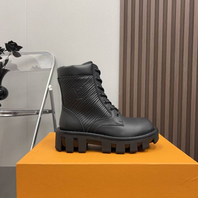 情侣 L*V驴家 Vs秋冬最新款短靴系列 情侣厚度压纹绑带短靴 重工打造,法国代购原版回来,历经数月全部私模打造,确保所有用料、材质、制作工艺与原版一致! 面料