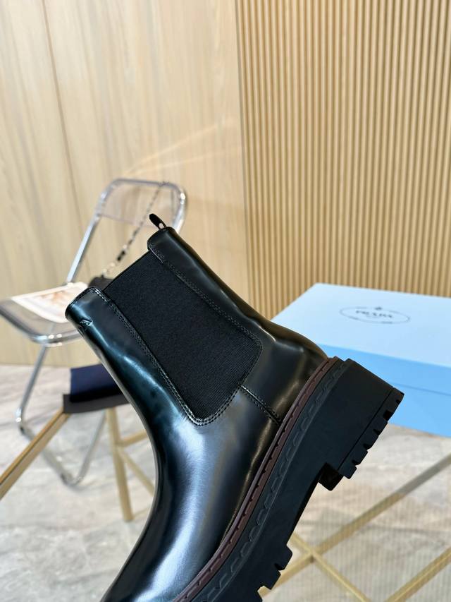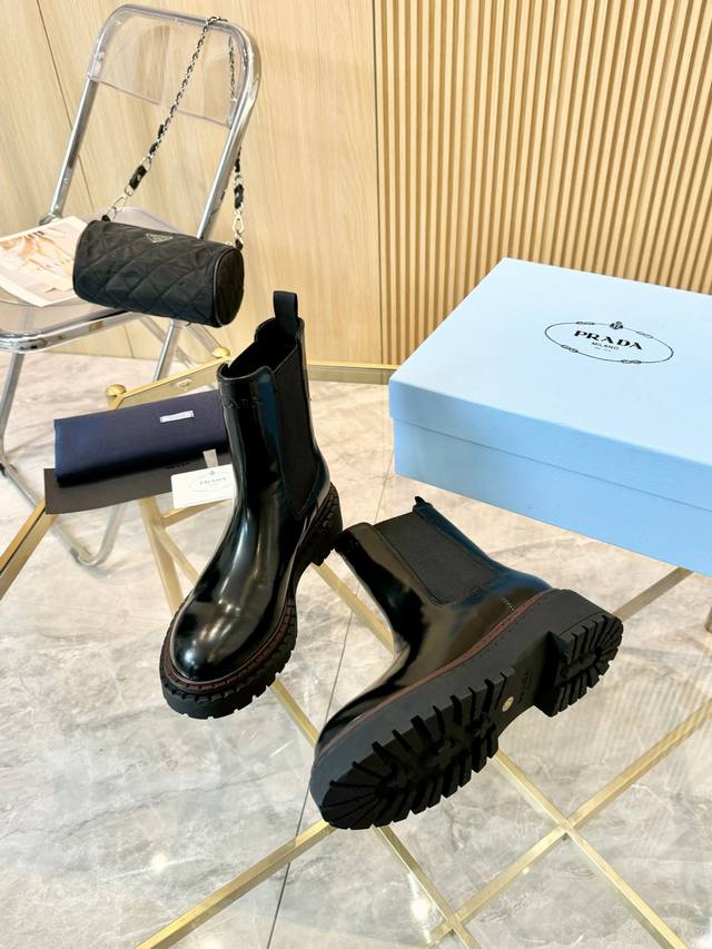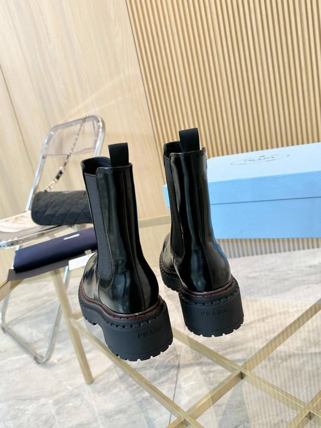 时尚从不妥协!Prada普拉达全真皮厚底擦色骑士靴,一脚蹬马丁靴震撼登场! 这款靴子采用顶级擦色真皮,奢华质感非凡,亲肤舒适。特色芽边的厚底设计,设计感也是满满的!不仅拉长腿部线条,还为您增添独特气场。 无论是漫步街头,还是参加派对,它都是绝佳伴侣。搭配紧身裤,尽显干练;搭配短裙,酷帅又俏皮。 每一针每一线都凝聚着 Prada 的精湛工艺和匠心精神。 穿上它,成为人群中的焦点,展现与众不同的魅力。别再犹豫,快来拥有这双让您魅力无限的靴子吧! 面料:复古擦色牛皮 内里:透气牛皮里+牛皮垫脚 鞋底:双层芽边橡