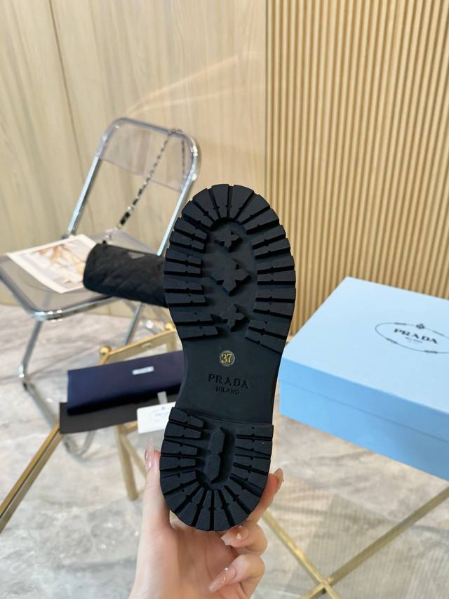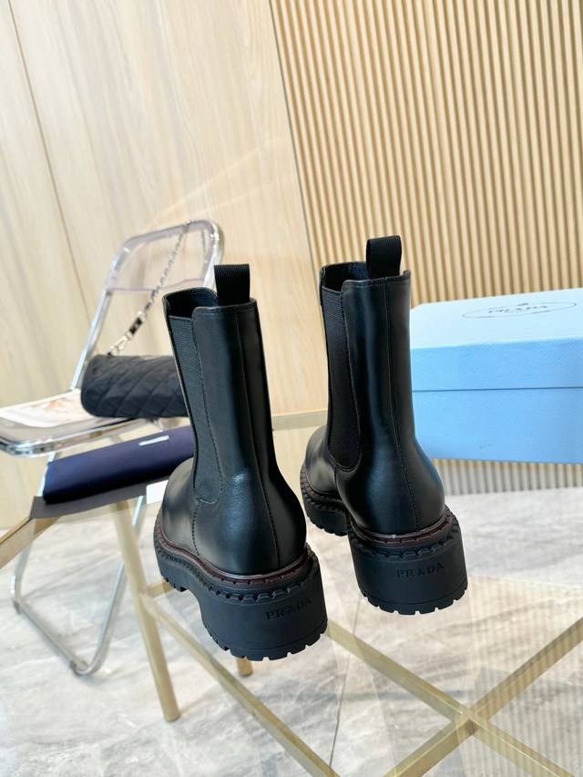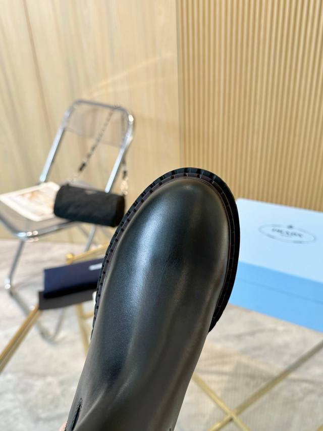 时尚从不妥协!Prada普拉达全真皮厚底擦色骑士靴,一脚蹬马丁靴震撼登场! 这款靴子采用顶级擦色真皮,奢华质感非凡,亲肤舒适。特色芽边的厚底设计,设计感也是满满的!不仅拉长腿部线条,还为您增添独特气场。 无论是漫步街头,还是参加派对,它都是绝佳伴侣。搭配紧身裤,尽显干练;搭配短裙,酷帅又俏皮。 每一针每一线都凝聚着 Prada 的精湛工艺和匠心精神。 穿上它,成为人群中的焦点,展现与众不同的魅力。别再犹豫,快来拥有这双让您魅力无限的靴子吧! 面料:复古擦色牛皮 内里:透气牛皮里+牛皮垫脚 鞋底:双层芽边橡