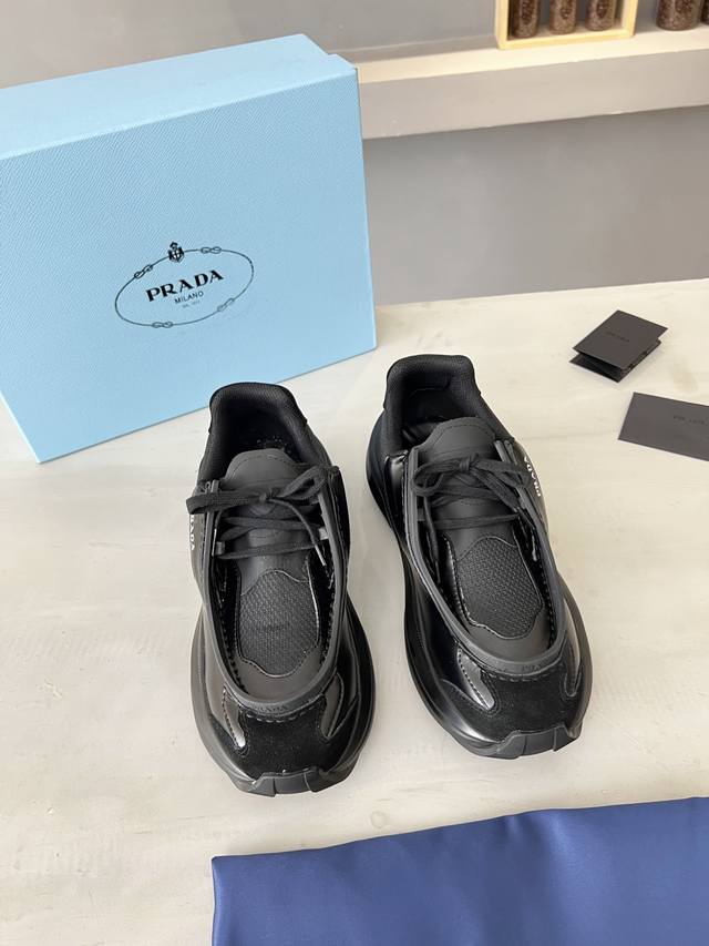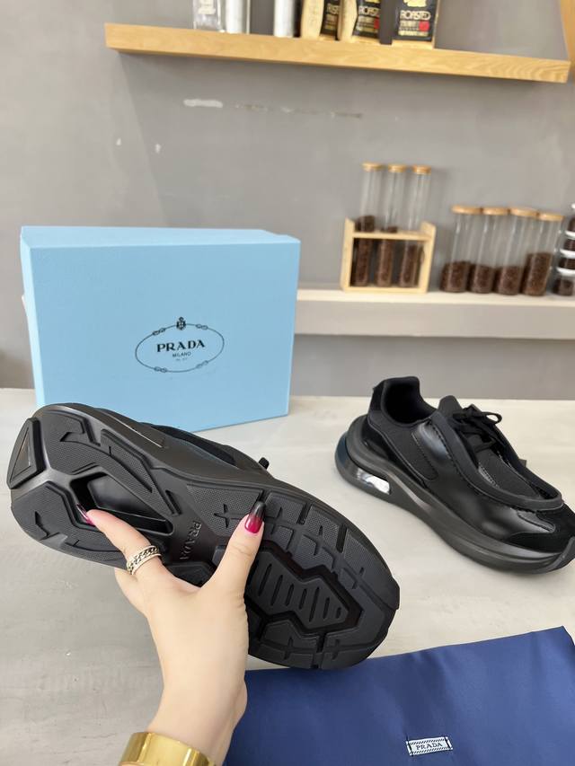 普拉达Prada顶级版运动鞋 鞋面进口飞织面料拼接羊京, 羊皮内里+牛皮踮脚, 耐磨防滑轻便大底, 男女同款: 码数:35-47码,...