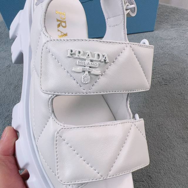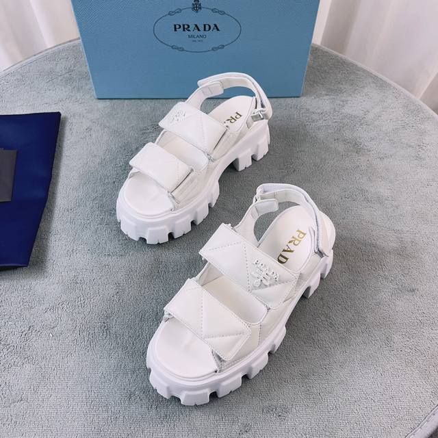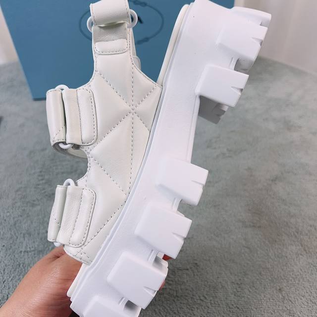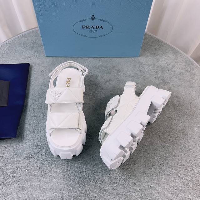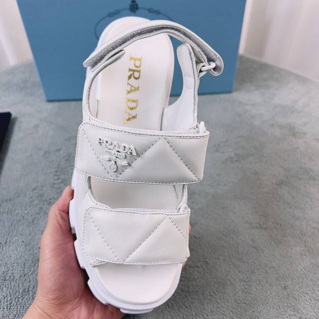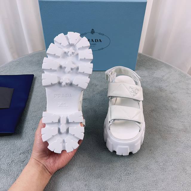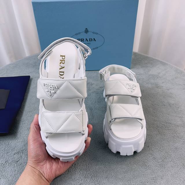 普拉达新款凉鞋 面:进口羊皮 里:进口混种羊皮 底:松糕带Logo防滑厚底 后跟高6Cm 码数:35-41