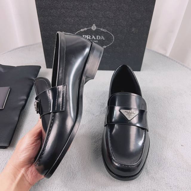 普拉达新款 面:进口开边珠牛皮 里:进口软牛皮 垫:开边珠+牛皮组合垫脚 底:原版1:1真皮大底 码数:38-45