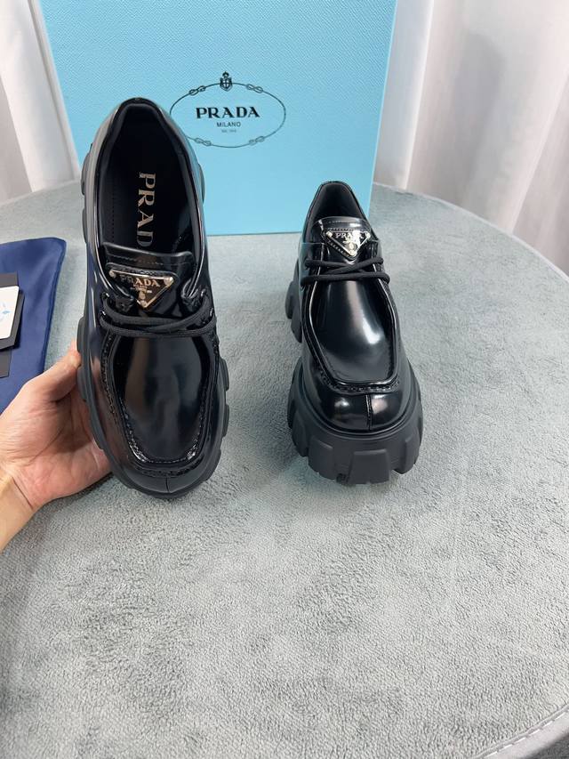 普拉达最新乐福鞋 面:进口开边珠、漆皮 里:进口混种羊皮里、垫脚 底:意大利原版松糕发泡大底 码数:35-41 40、41定制不退换