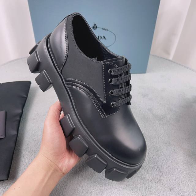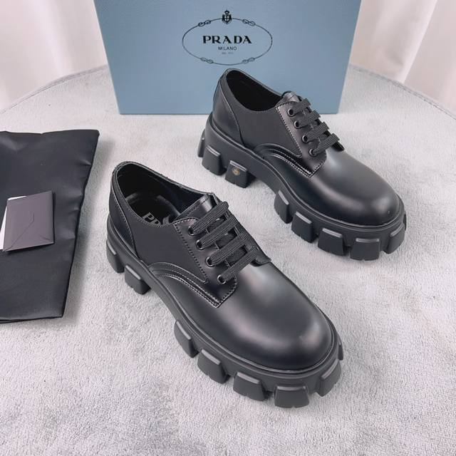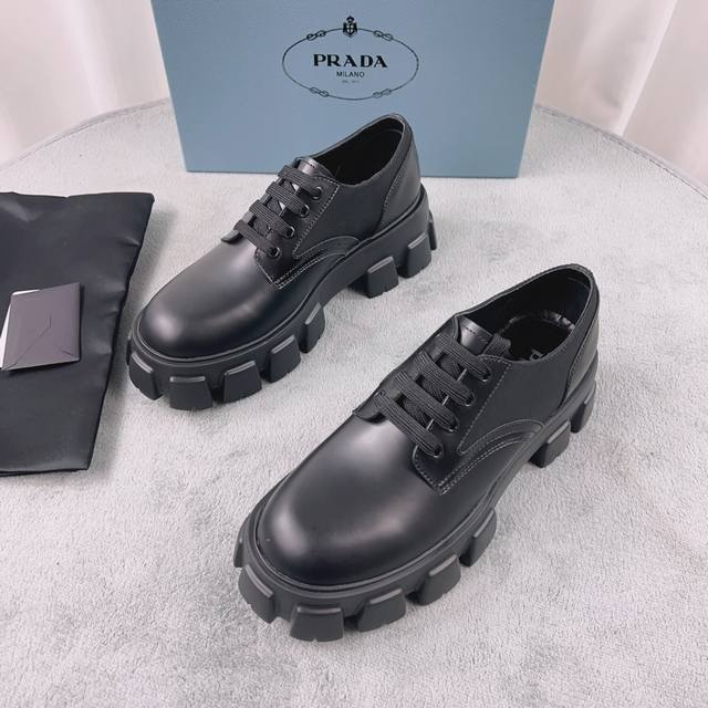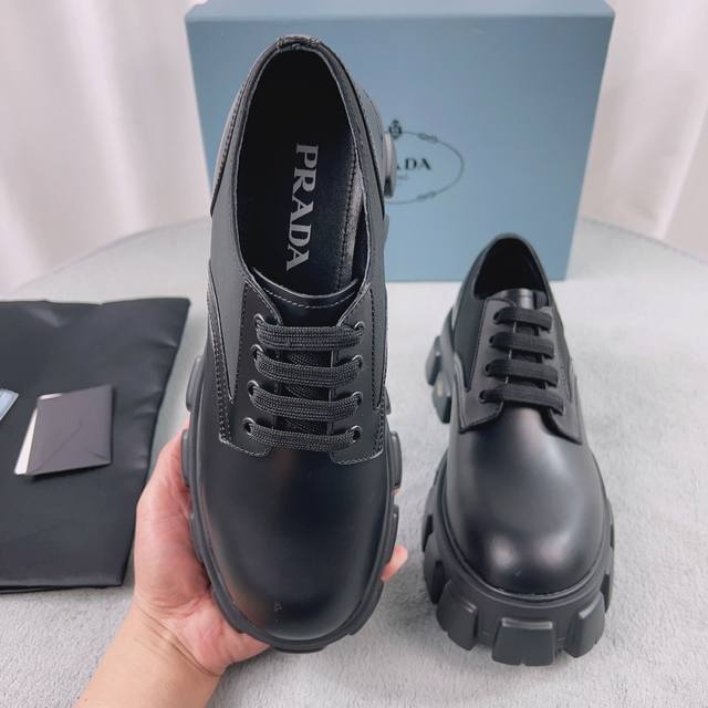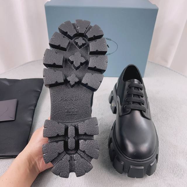 普拉达经典系列 面:进口开边珠 里:进口混种羊皮 垫:羊皮 底:松糕带Logo防滑厚底 跟高6Cm 码数:38-45