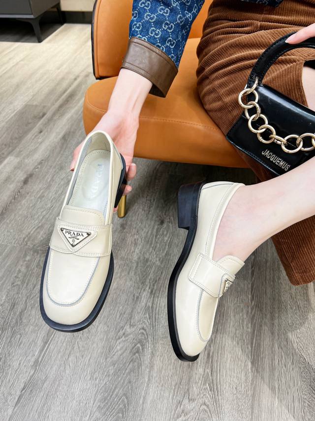 / 普拉达 新款开边朱厚底休闲小皮鞋,刘雯众多网红上脚,Prad这款松糕厚底鞋今年非常爆,穿上 增高 休闲两不失误,清爽的表现足以表达对鞋子的个个细节的把控,原版五