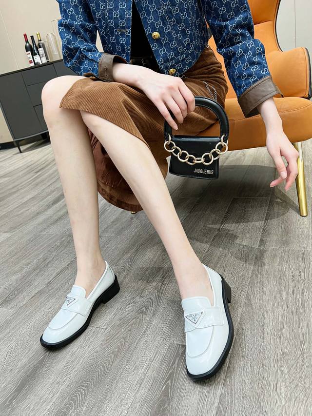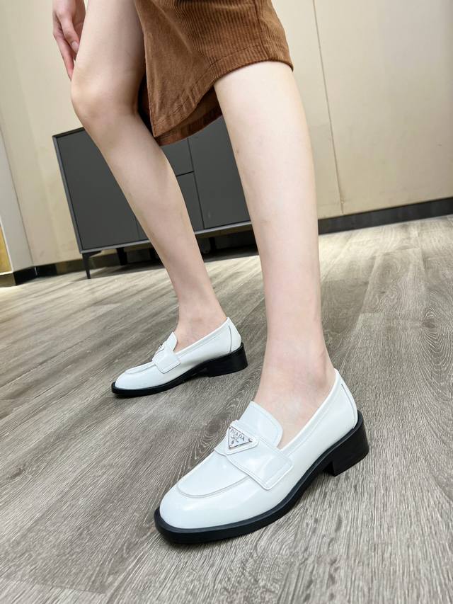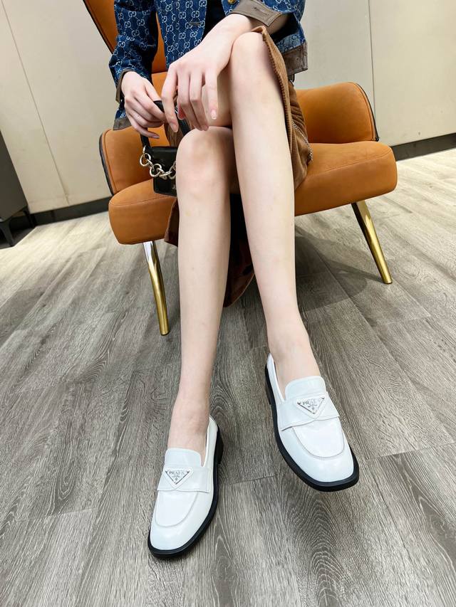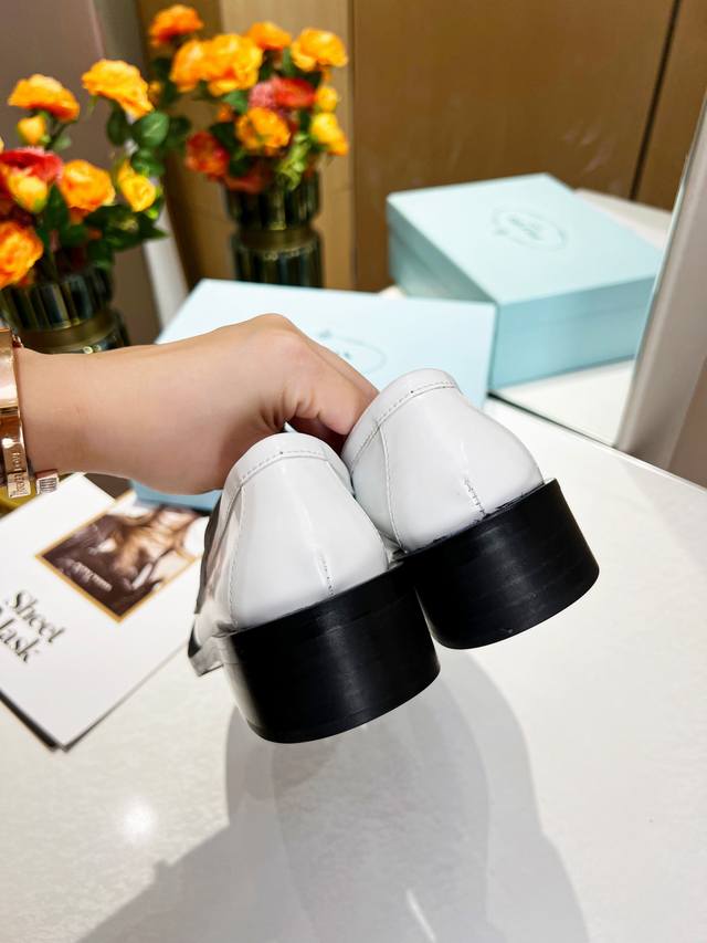 / 普拉达 新款开边朱厚底休闲小皮鞋,刘雯众多网红上脚,Prad这款松糕厚底鞋今年非常爆,穿上 增高 休闲两不失误,清爽的表现足以表达对鞋子的个个细节的把控,原版五