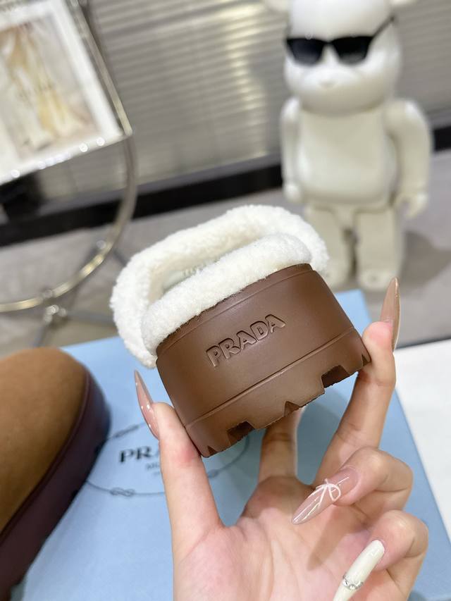 / 普拉达 Parda 爆款秋冬包头毛拖鞋 走秀单品,冬季室内,早春室外。该款羊皮毛拖鞋配有橡胶Ip超轻发泡鞋底,软羊革绗缝图案呼应标志性的Prada三角形,伴以涂