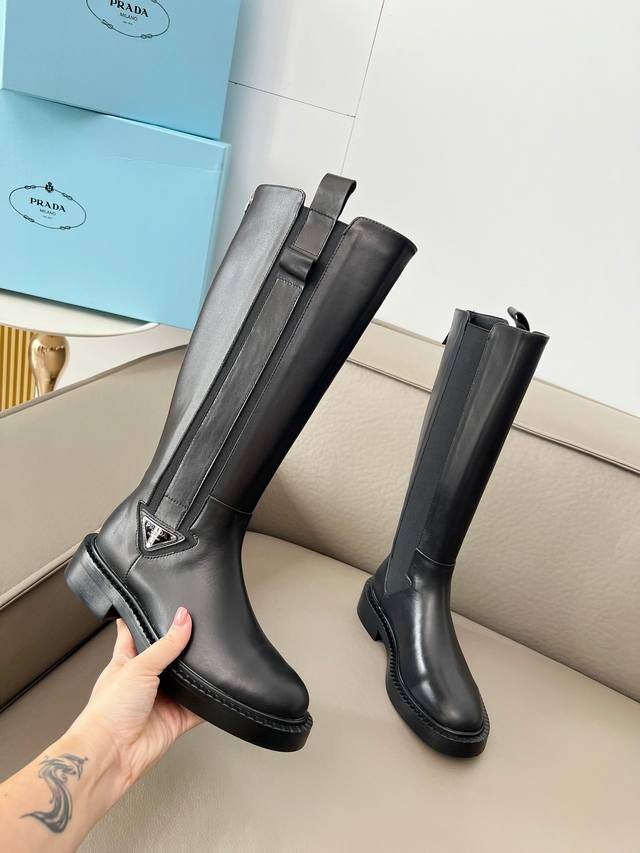 / 普拉达Prada顶级版本 机车高靴来了,上脚超机好看穿着舒适高雅 专柜原版开模大底1:1复刻 采用 面料:头层牛皮,进口防爆裂开边珠 内里采用进口混种羊皮里 原