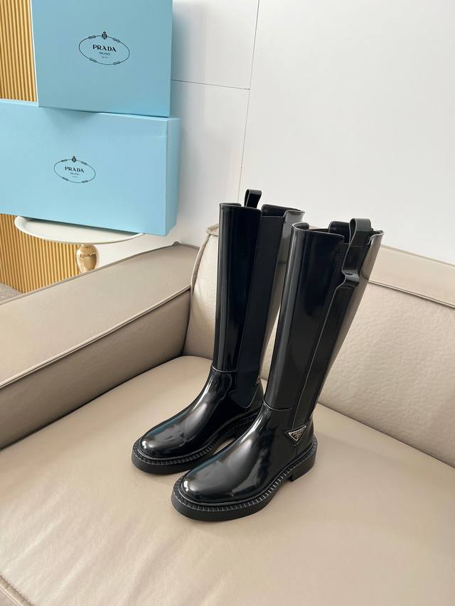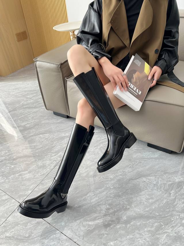 普拉达Prada顶级版本 机车高靴来了,上脚超机好看穿着舒适高雅 专柜原版开模大底1:1复刻 采用 面料:头层牛皮,进口防爆裂开边珠 内里采用进口混种羊皮里 原