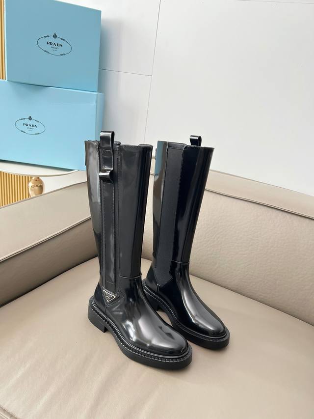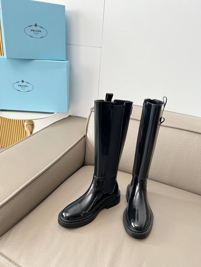 / 普拉达Prada顶级版本 机车高靴来了,上脚超机好看穿着舒适高雅 专柜原版开模大底1:1复刻 采用 面料:头层牛皮,进口防爆裂开边珠 内里采用进口混种羊皮里 原
