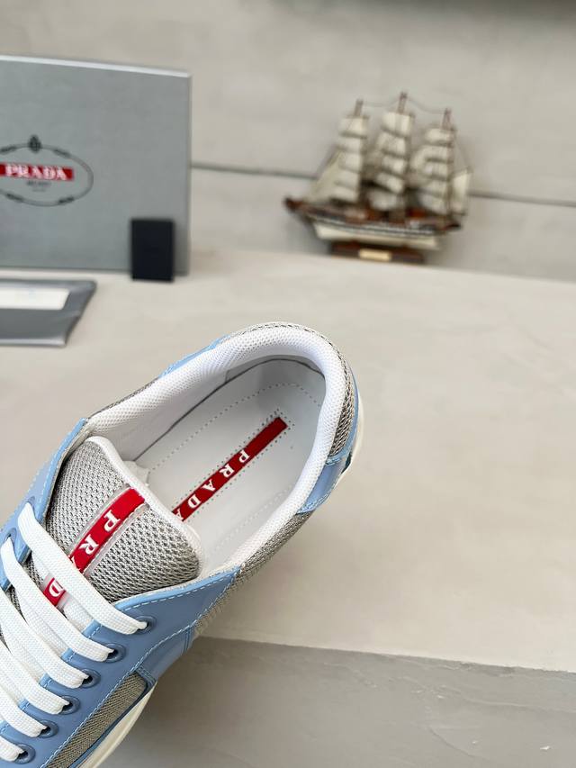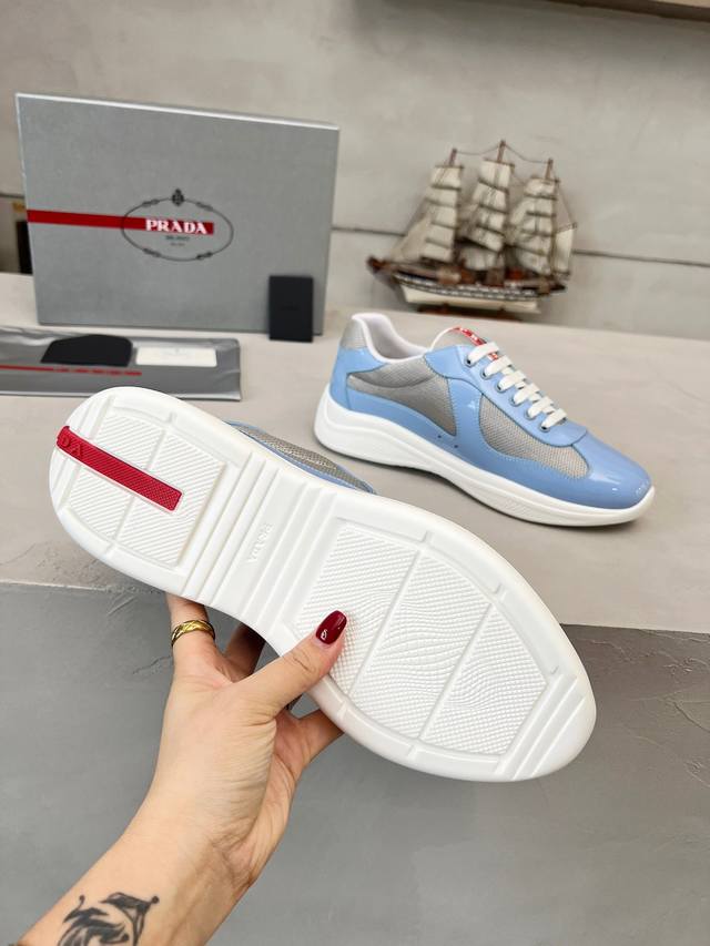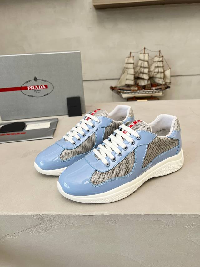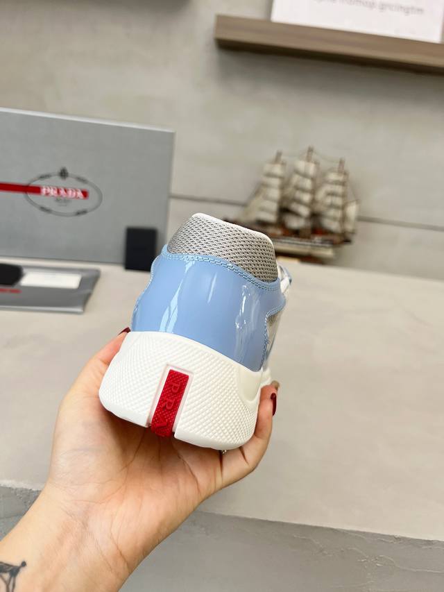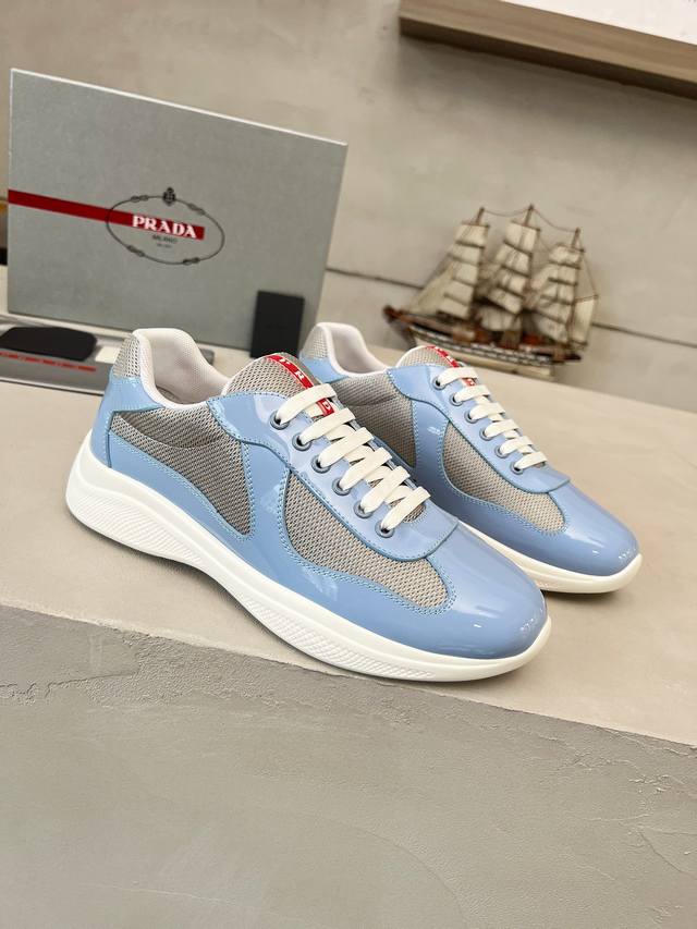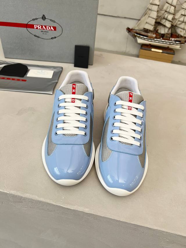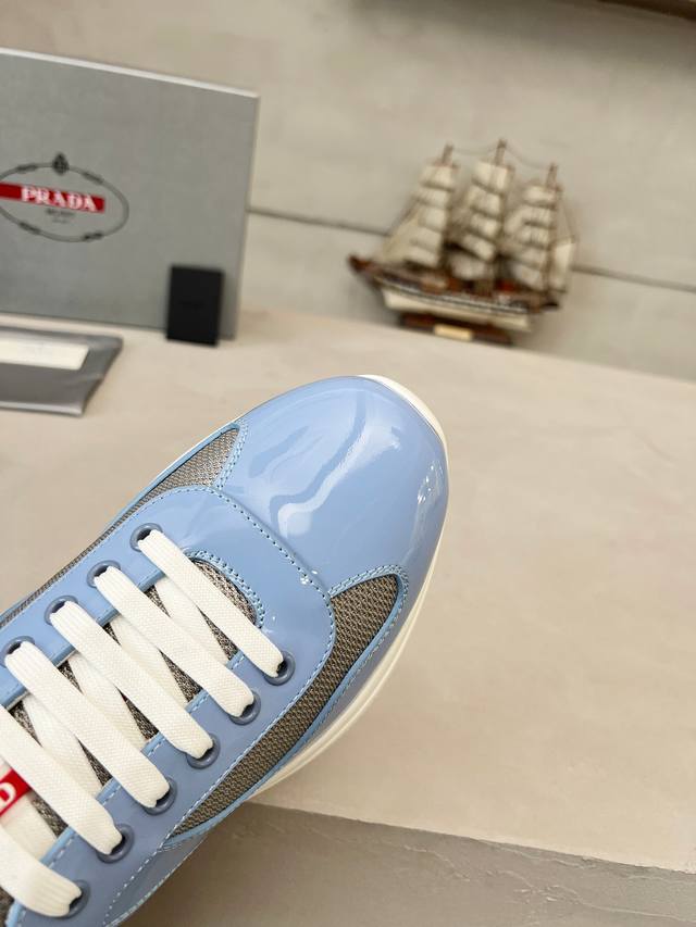 普拉达Prada顶级版运动鞋 鞋面进口飞织面料拼接漆皮, 羊皮内里+牛皮踮脚, 耐磨防滑轻便大底, 男女同款: 码数:35-47码, 45.46.47定做