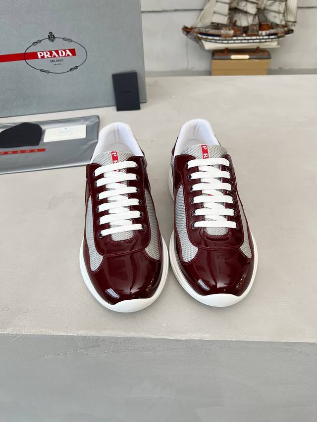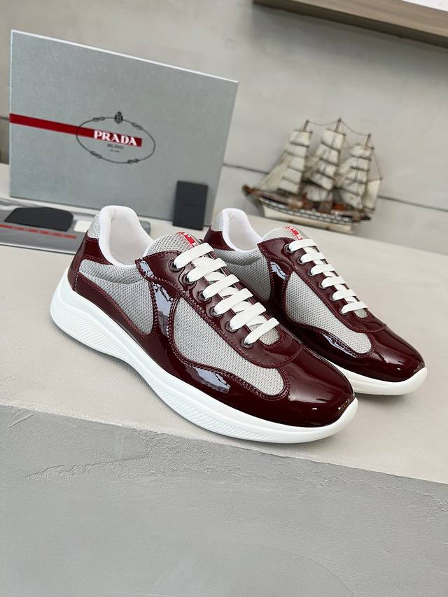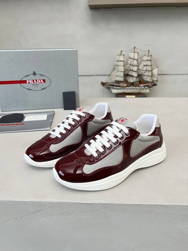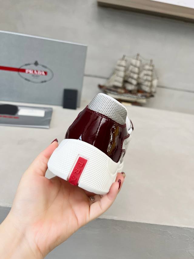 普拉达Prada顶级版运动鞋 鞋面进口飞织面料拼接漆皮, 羊皮内里+牛皮踮脚, 耐磨防滑轻便大底, 男女同款: 码数:35-47码, 45.46.47定做