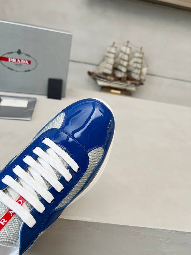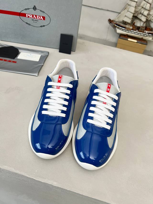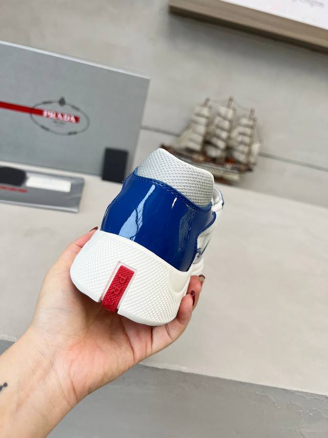 普拉达Prada顶级版运动鞋 鞋面进口飞织面料拼接漆皮, 羊皮内里+牛皮踮脚, 耐磨防滑轻便大底, 男女同款: 码数:35-47码, 45.46.47定做