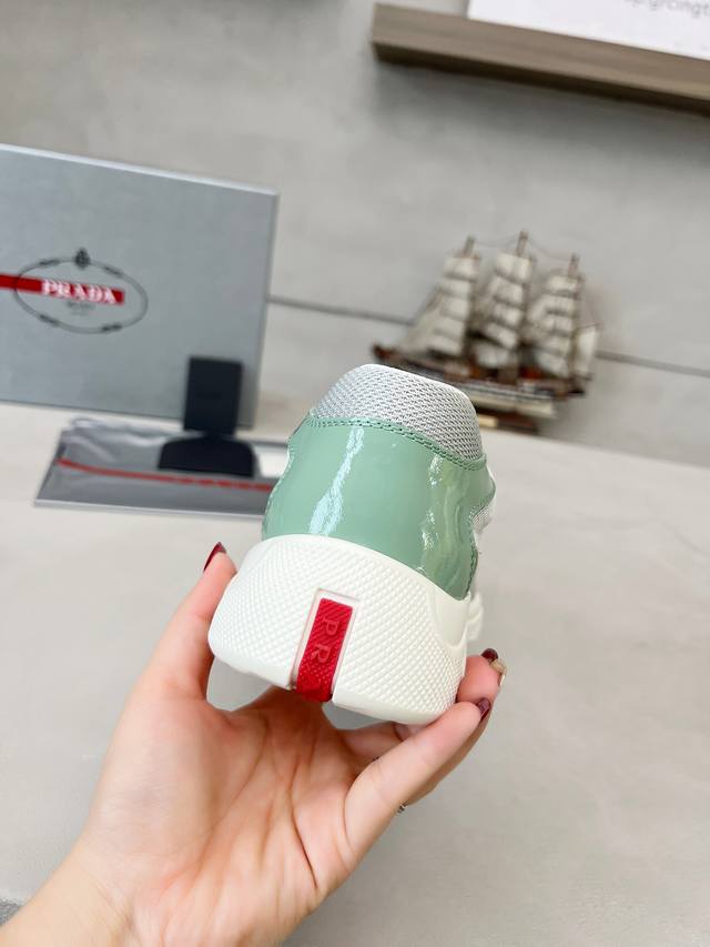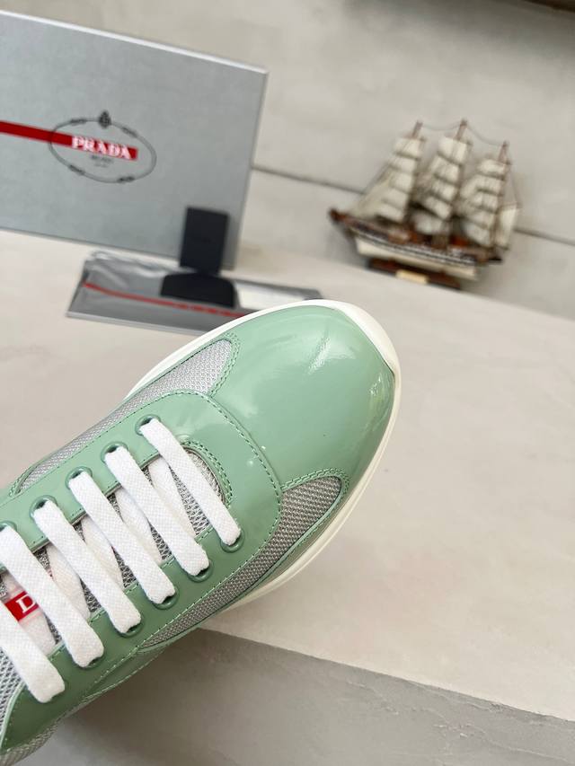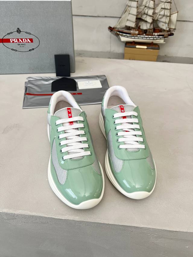 普拉达Prada顶级版运动鞋 鞋面进口飞织面料拼接漆皮, 羊皮内里+牛皮踮脚, 耐磨防滑轻便大底, 男女同款: 码数:35-47码, 45.46.47定做
