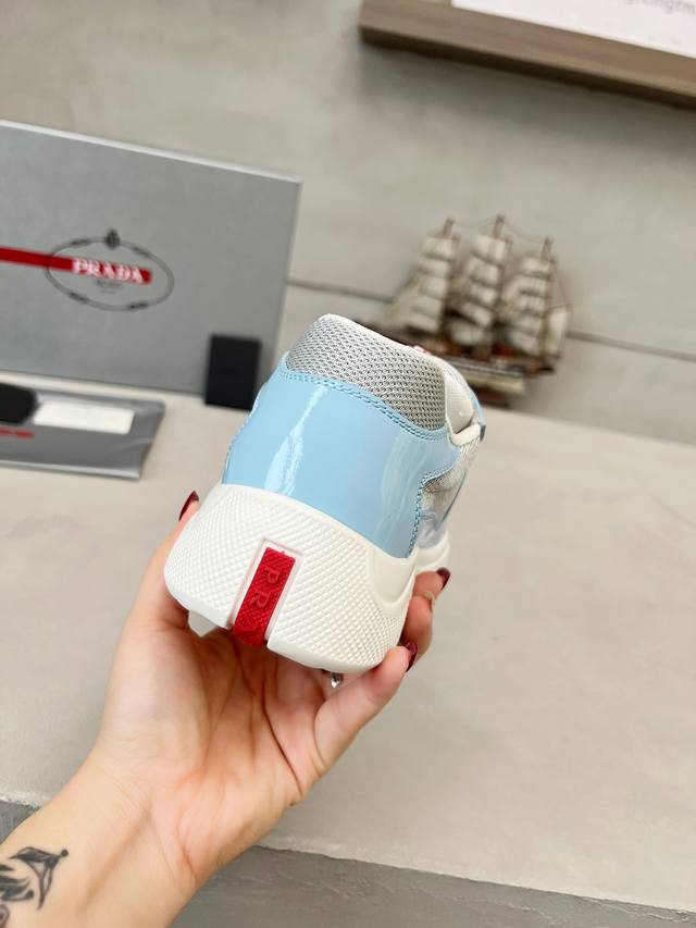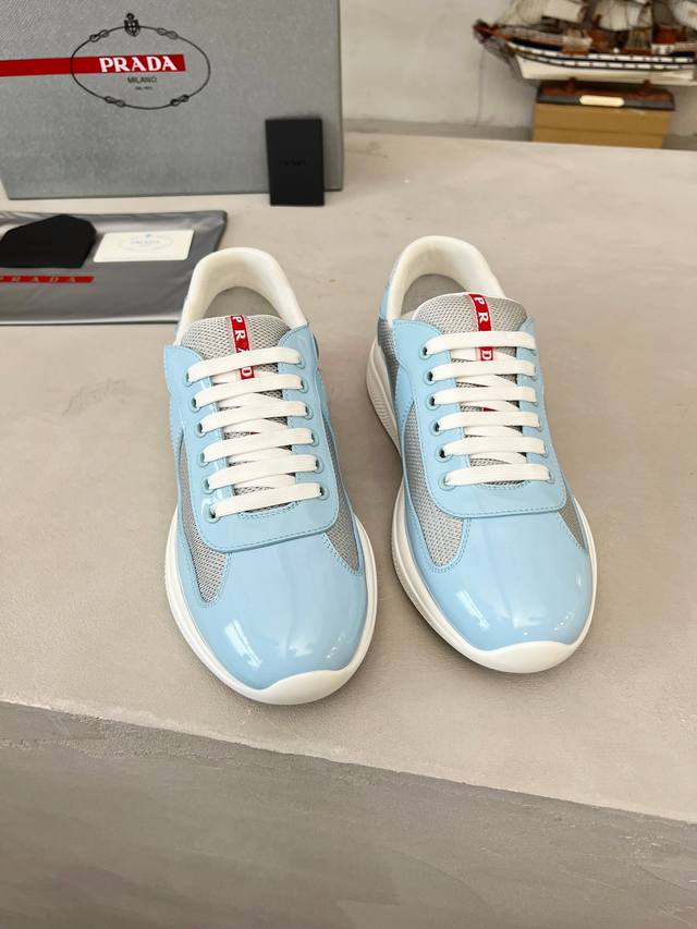 普拉达Prada顶级版运动鞋 鞋面进口飞织面料拼接漆皮, 羊皮内里+牛皮踮脚, 耐磨防滑轻便大底, 男女同款: 码数:35-47码, 45.46.47定做