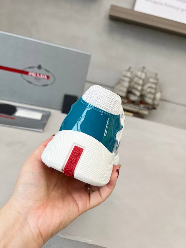 普拉达Prada顶级版运动鞋 鞋面进口飞织面料拼接漆皮, 羊皮内里+牛皮踮脚, 耐磨防滑轻便大底, 男女同款: 码数:35-47码, 45.46.47定做