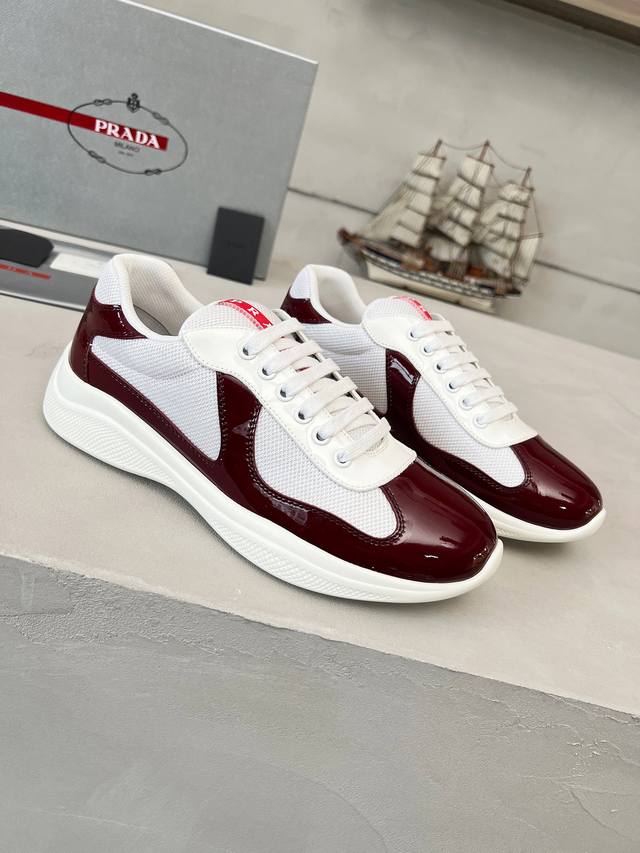 普拉达Prada顶级版运动鞋 鞋面进口飞织面料拼接漆皮, 羊皮内里+牛皮踮脚, 耐磨防滑轻便大底, 男女同款: 码数:35-47码, 45.46.47定做