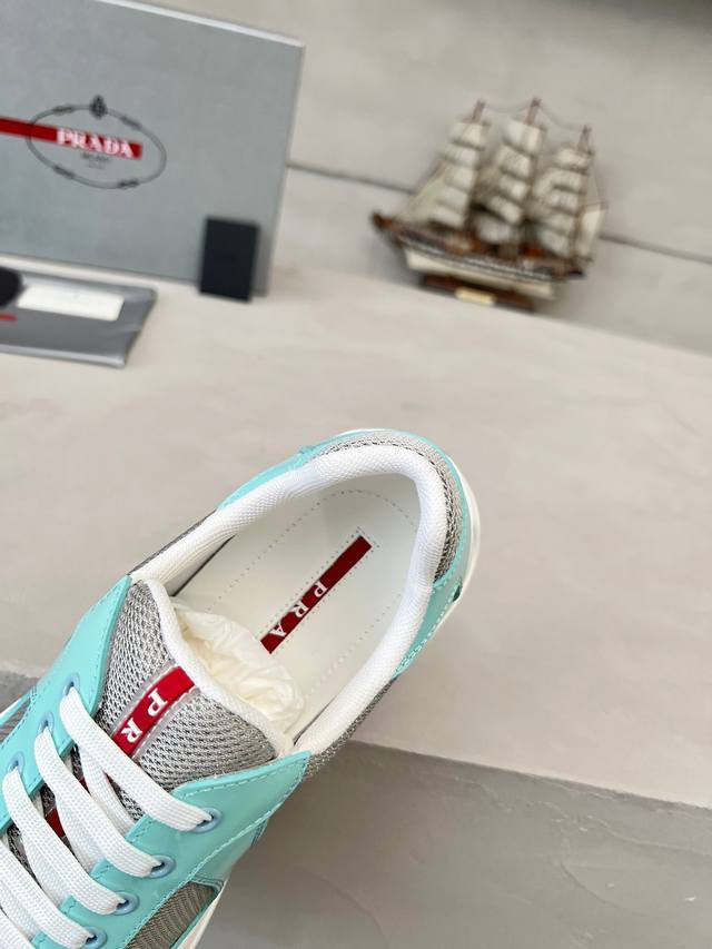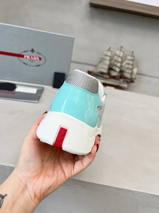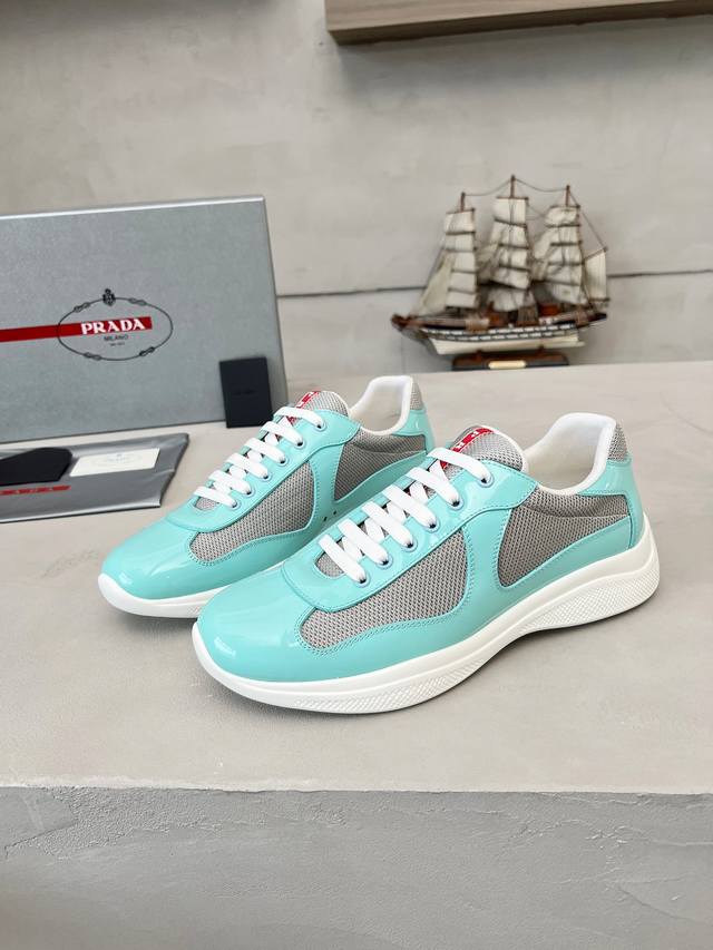 普拉达Prada顶级版运动鞋 鞋面进口飞织面料拼接漆皮, 羊皮内里+牛皮踮脚, 耐磨防滑轻便大底, 男女同款: 码数:35-47码, 45.46.47定做