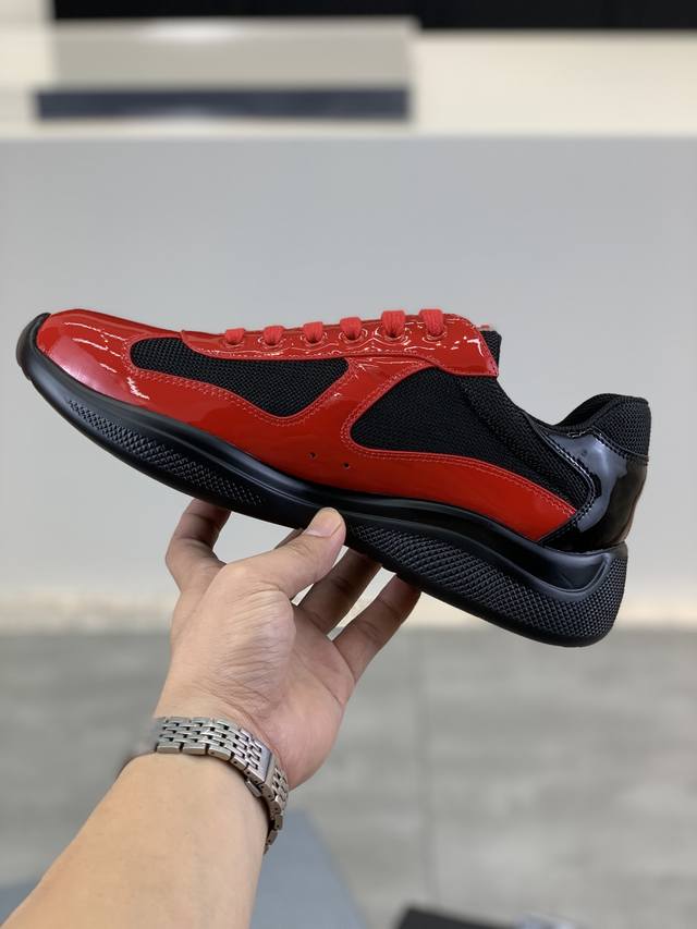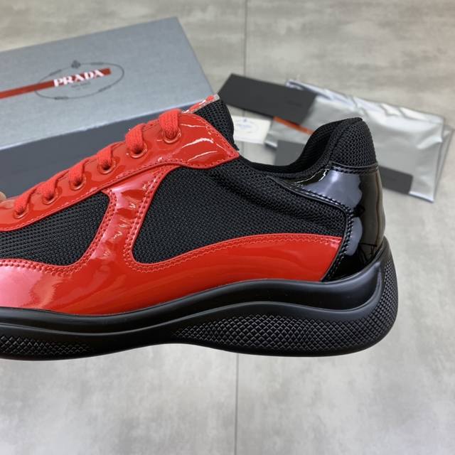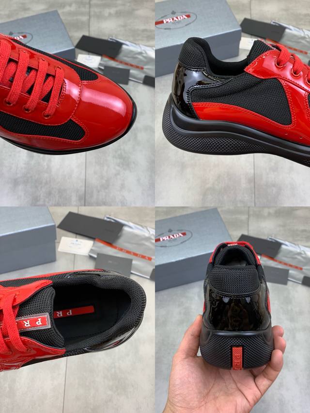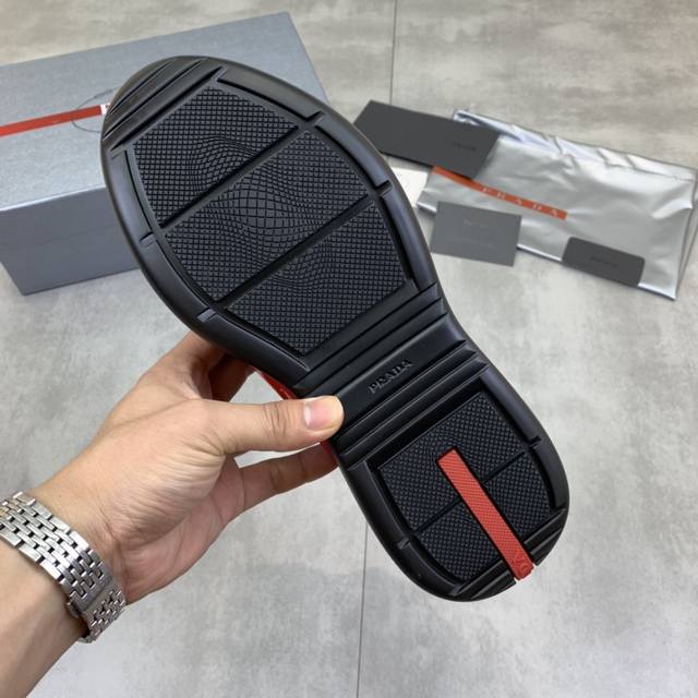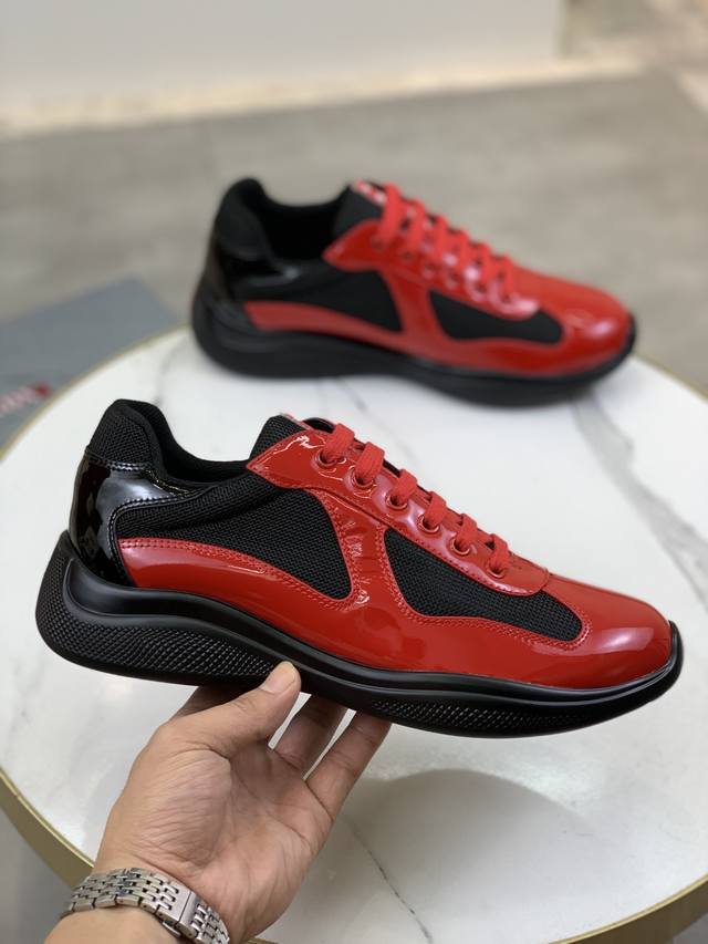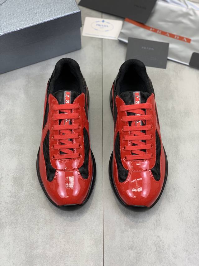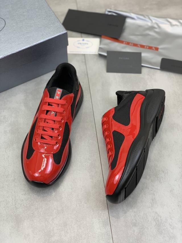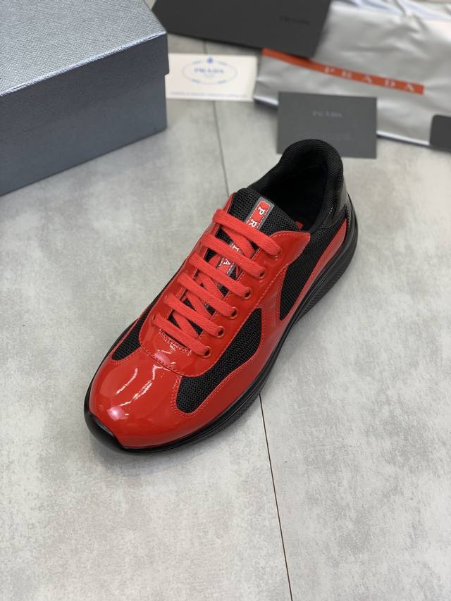 普拉达Prada顶级版运动鞋 鞋面进口飞织面料拼接漆皮, 羊皮内里+牛皮踮脚, 耐磨防滑轻便大底, 男女同款: 码数:35-47码, 45.46.47定做