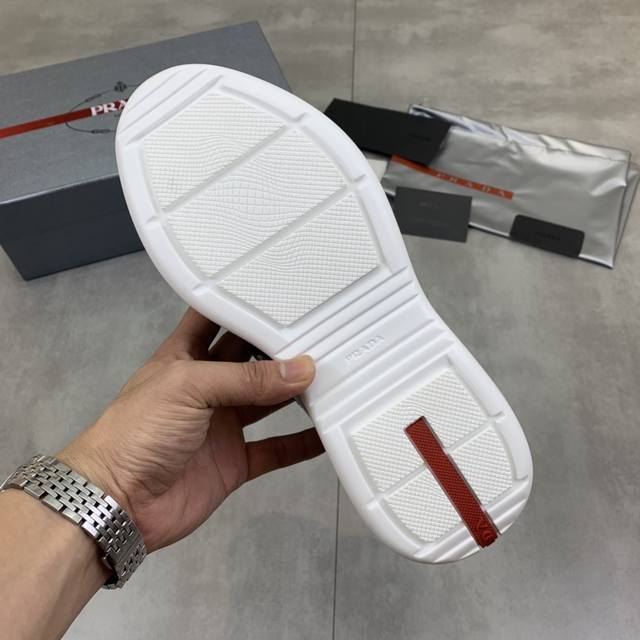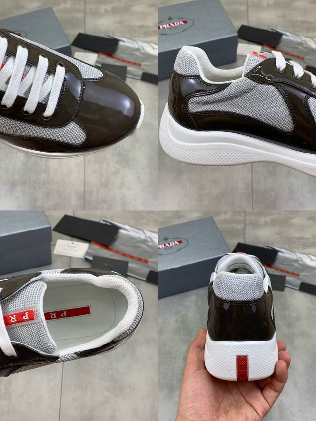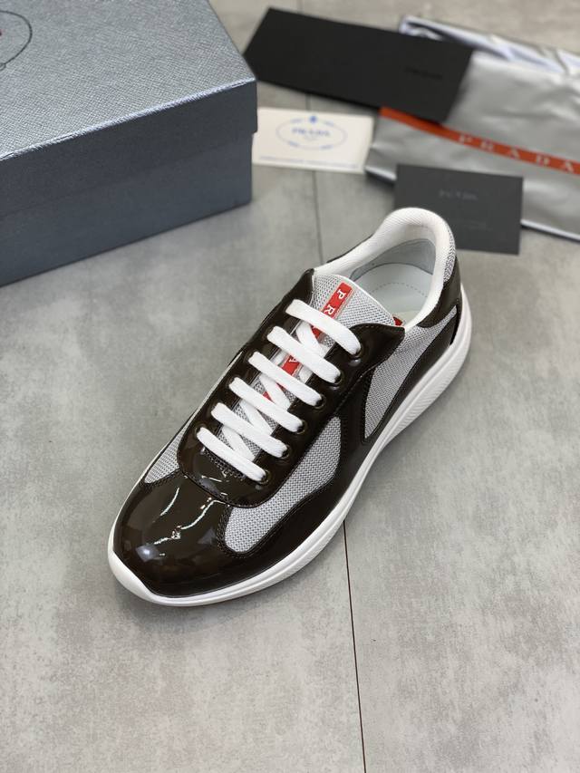 普拉达Prada顶级版运动鞋 鞋面进口飞织面料拼接漆皮, 羊皮内里+牛皮踮脚, 耐磨防滑轻便大底, 男女同款: 码数:35-47码, 45.46.47定做