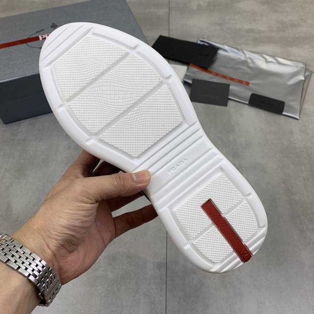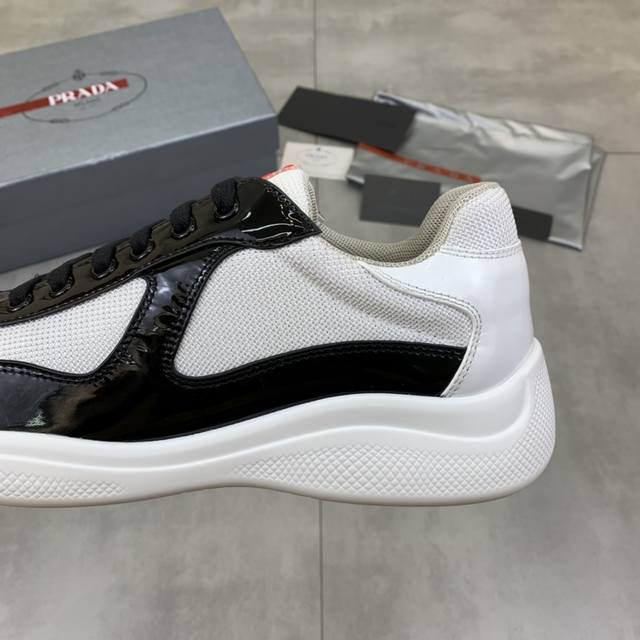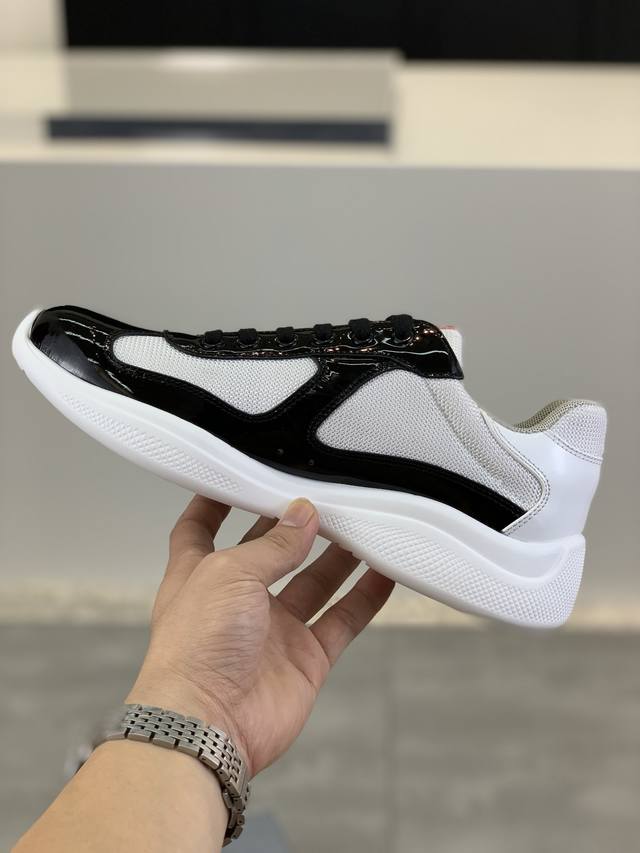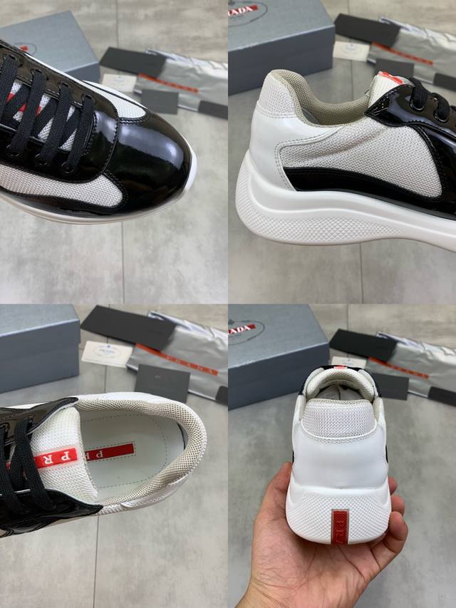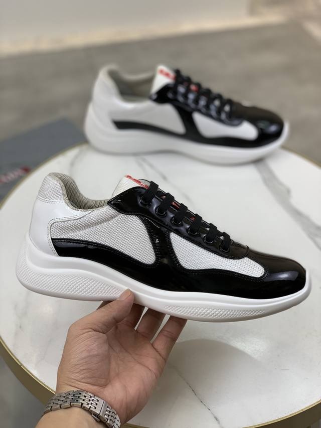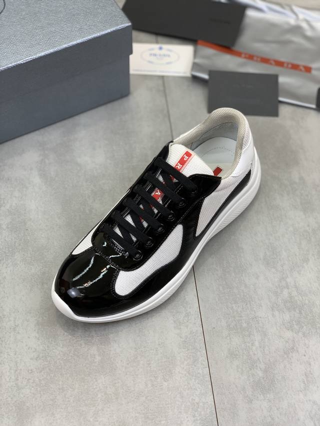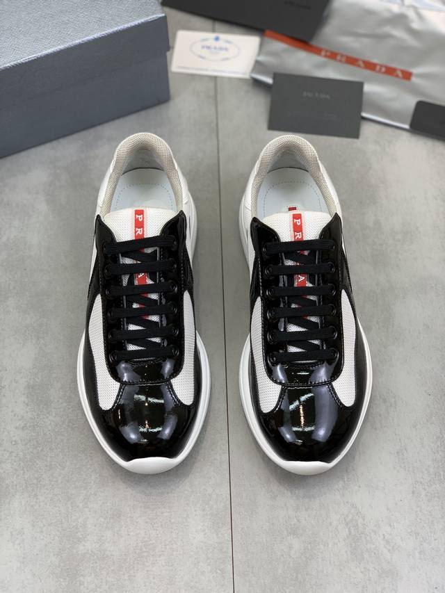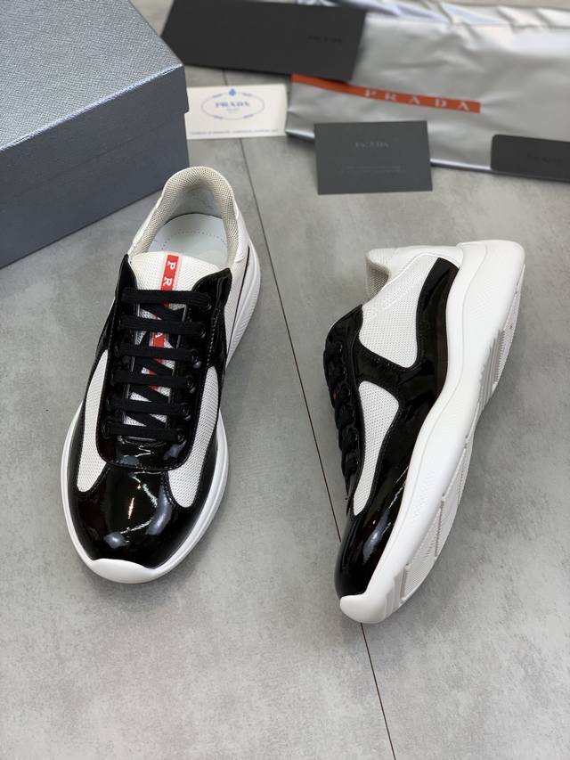 普拉达Prada顶级版运动鞋 鞋面进口飞织面料拼接漆皮, 羊皮内里+牛皮踮脚, 耐磨防滑轻便大底, 男女同款: 码数:35-47码, 45.46.47定做