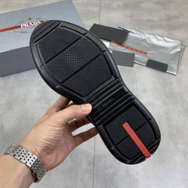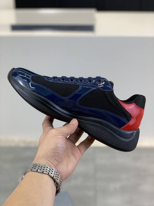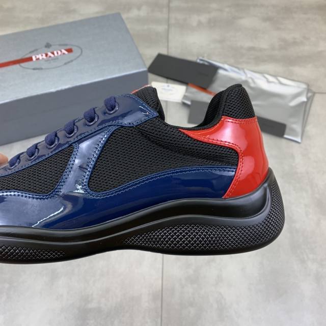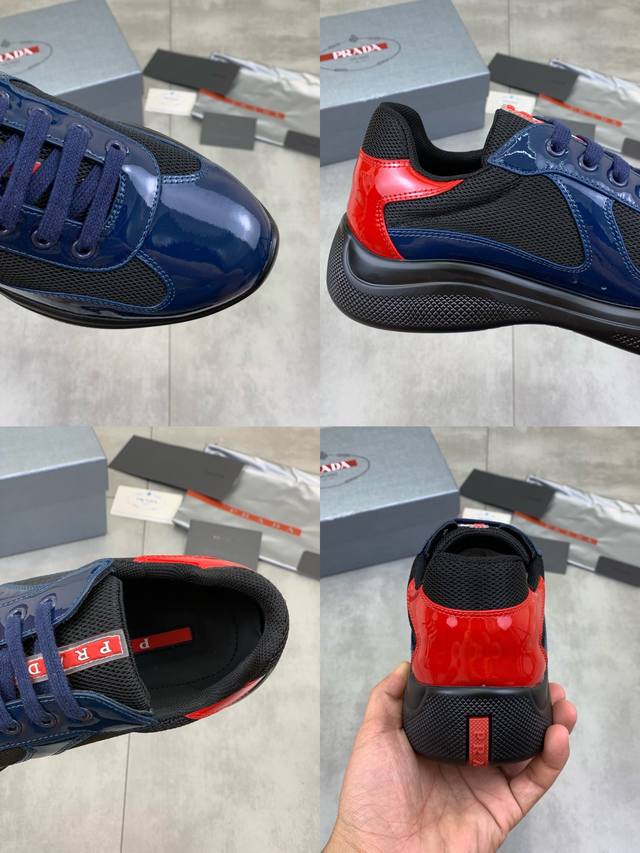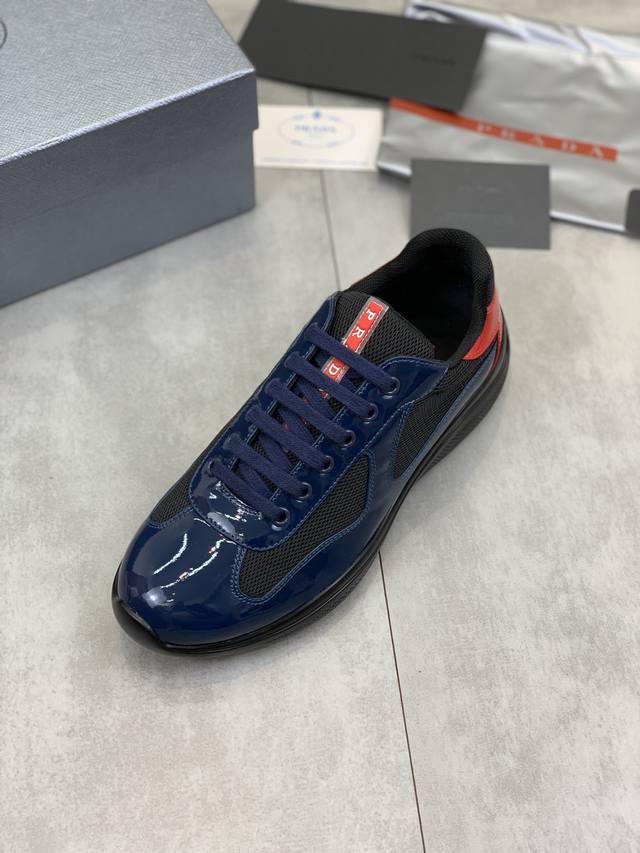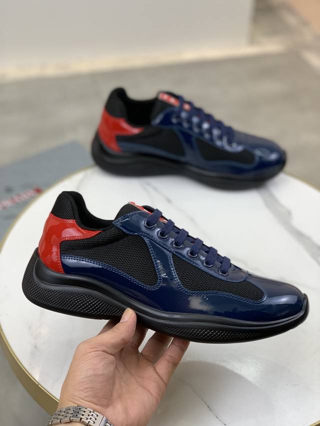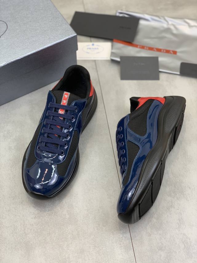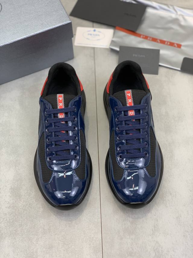 普拉达Prada顶级版运动鞋 鞋面进口飞织面料拼接漆皮, 羊皮内里+牛皮踮脚, 耐磨防滑轻便大底, 男女同款: 码数:35-47码, 45.46.47定做