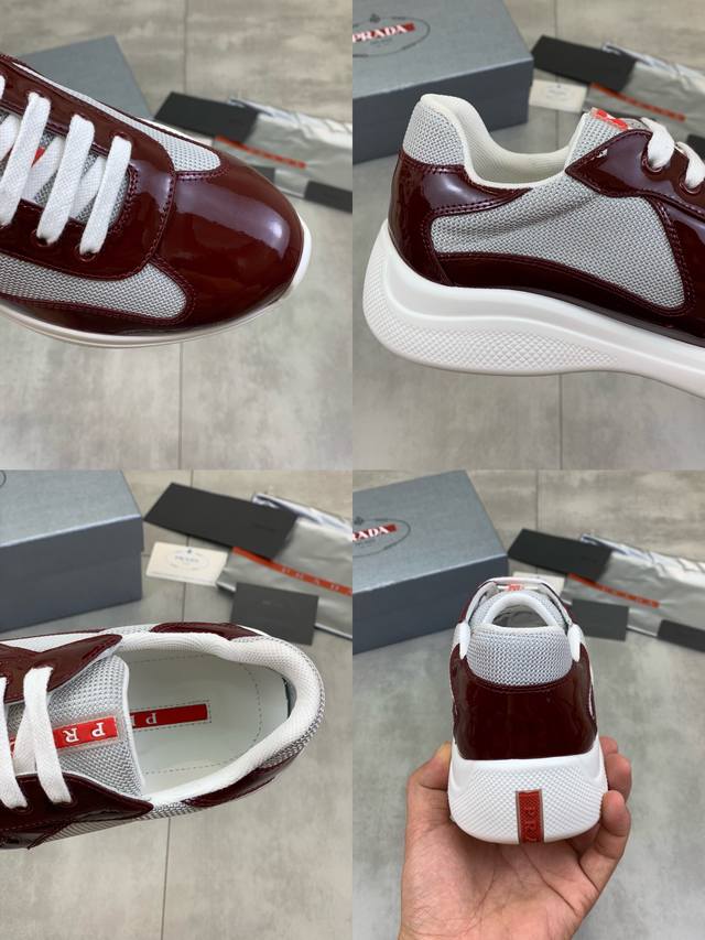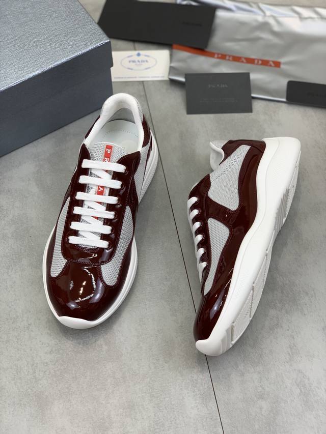 普拉达Prada顶级版运动鞋 鞋面进口飞织面料拼接漆皮, 羊皮内里+牛皮踮脚, 耐磨防滑轻便大底, 男女同款: 码数:35-47码, 45.46.47定做