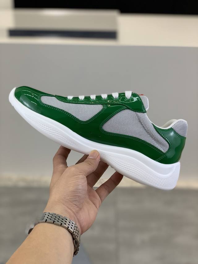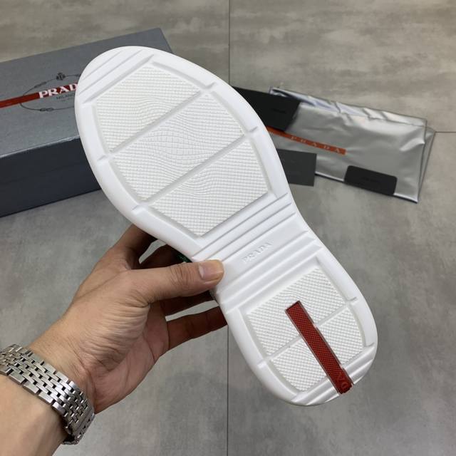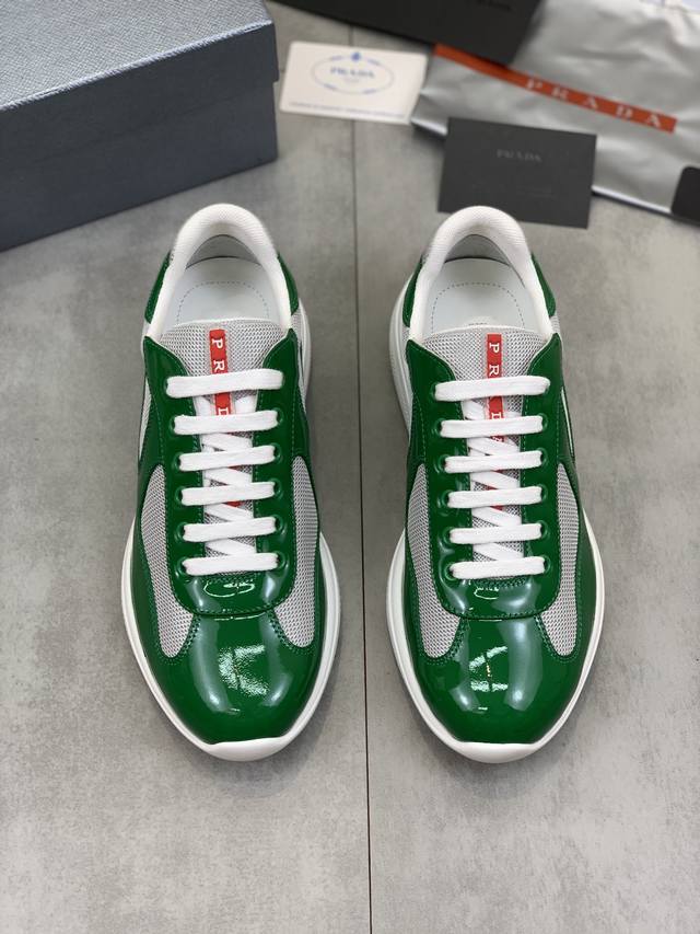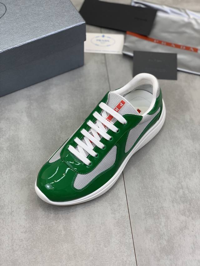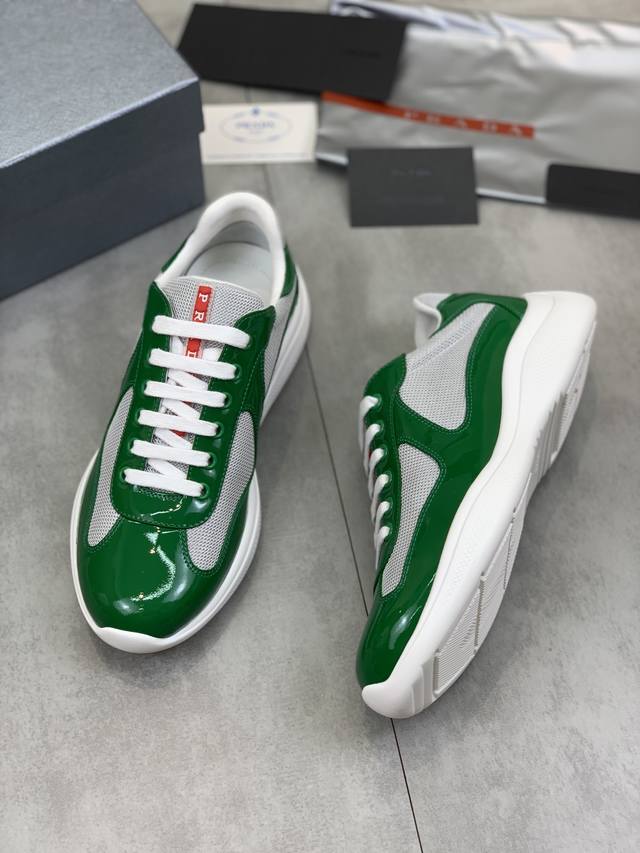 普拉达Prada顶级版运动鞋 鞋面进口飞织面料拼接漆皮, 羊皮内里+牛皮踮脚, 耐磨防滑轻便大底, 男女同款: 码数:35-47码, 45.46.47定做