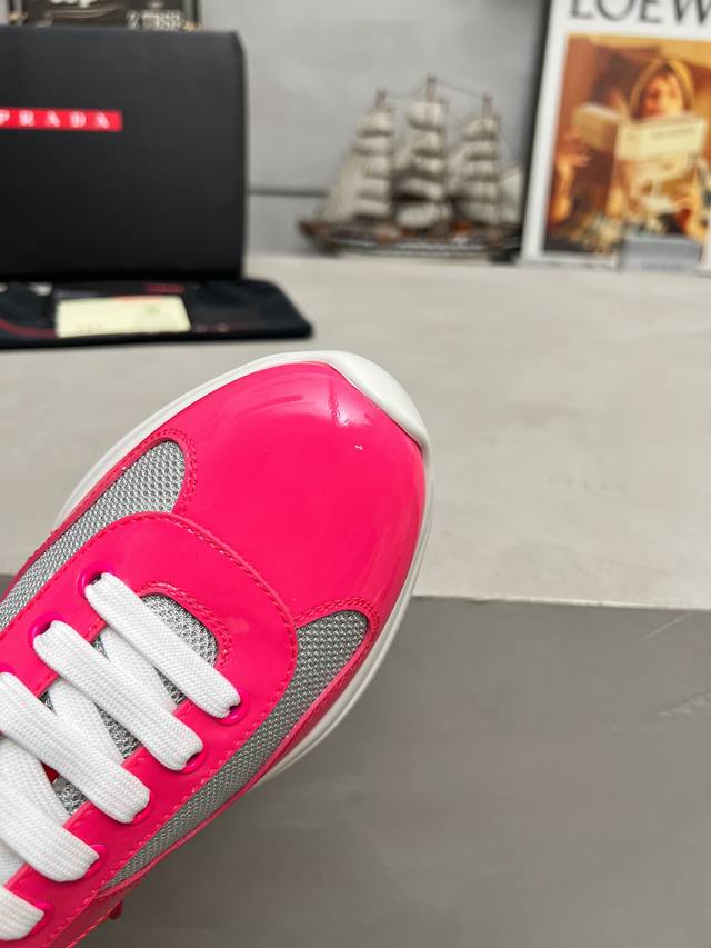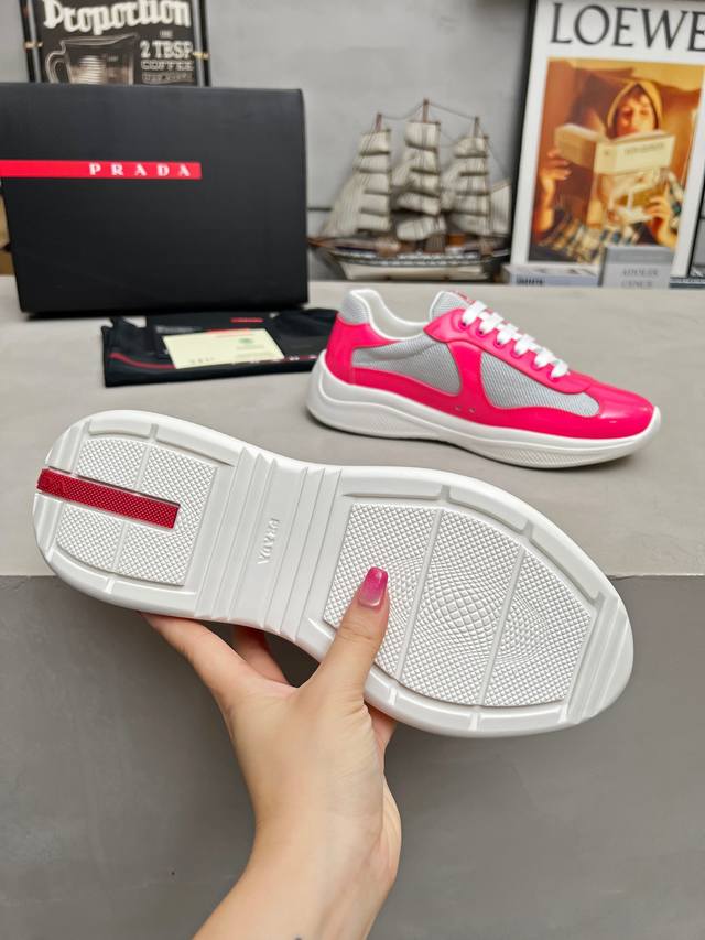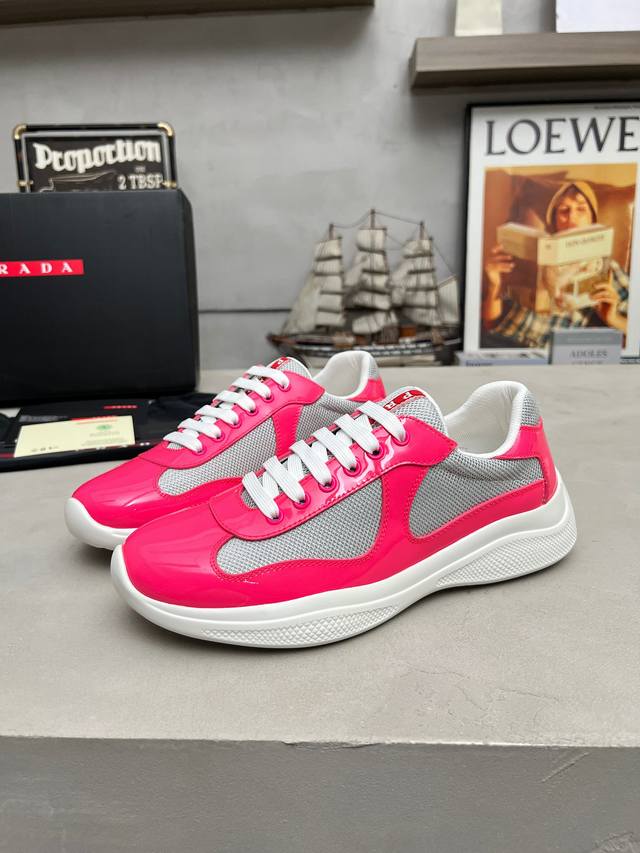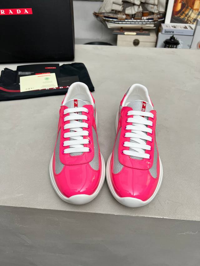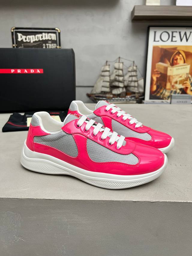 普拉达Prada顶级版运动鞋 鞋面进口飞织面料拼接漆皮, 羊皮内里+牛皮踮脚, 耐磨防滑轻便大底, 男女同款: 码数:35-47码, 46.47定做