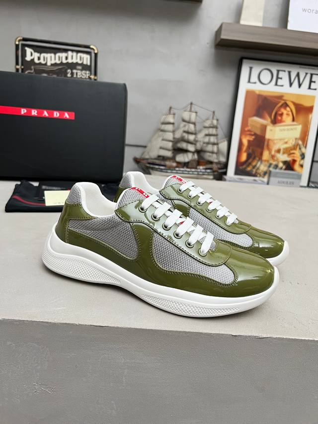 普拉达Prada顶级版运动鞋 鞋面进口飞织面料拼接漆皮, 羊皮内里+牛皮踮脚, 耐磨防滑轻便大底, 男女同款: 码数:35-47码, 46.47定做