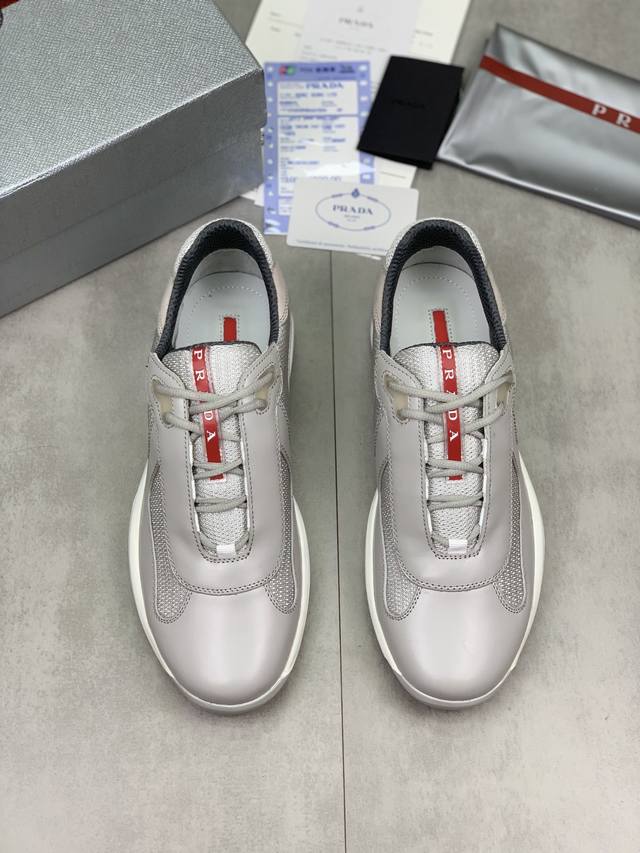 普拉达Prada顶级版运动鞋 鞋面进口飞织面料拼接漆皮, 羊皮内里+牛皮踮脚, 耐磨防滑轻便大底, 男女同款: 码数:35-47码, 46.47定做
