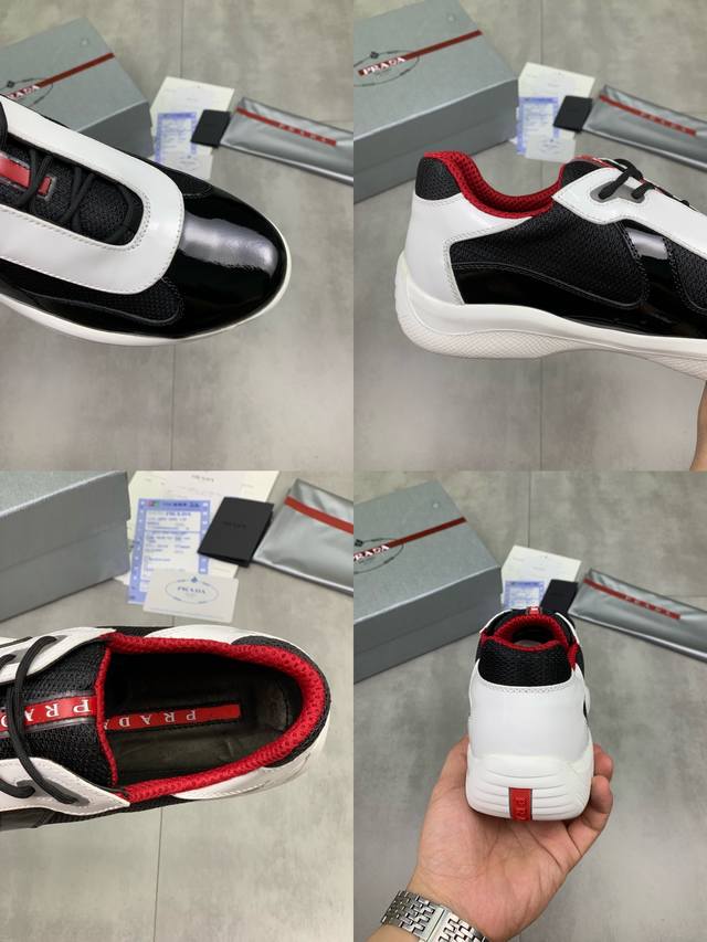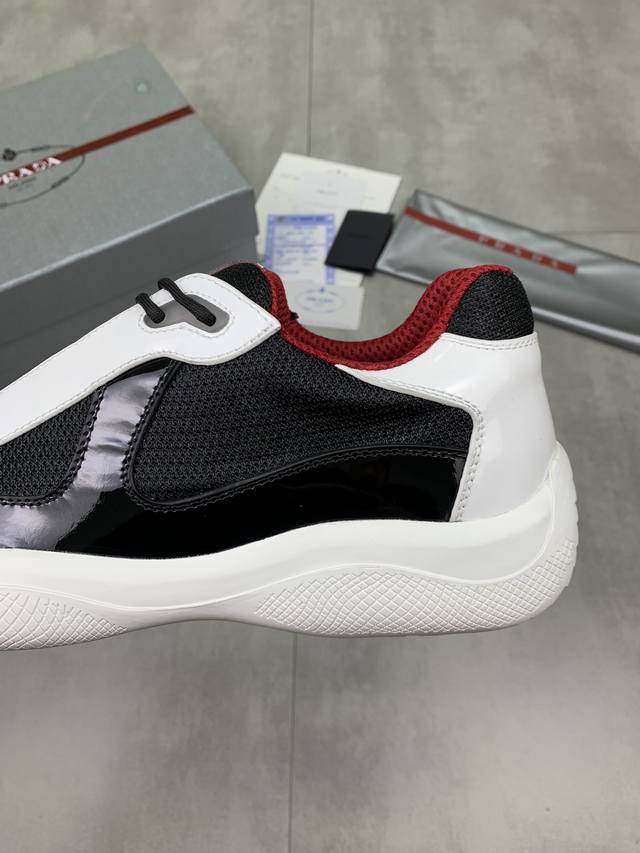 普拉达Prada顶级版运动鞋 鞋面进口飞织面料拼接漆皮, 羊皮内里+牛皮踮脚, 耐磨防滑轻便大底, 男女同款: 码数:35-47码, 46.47定做