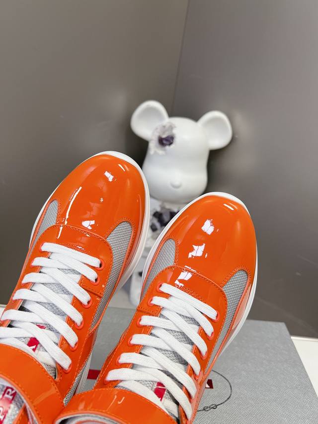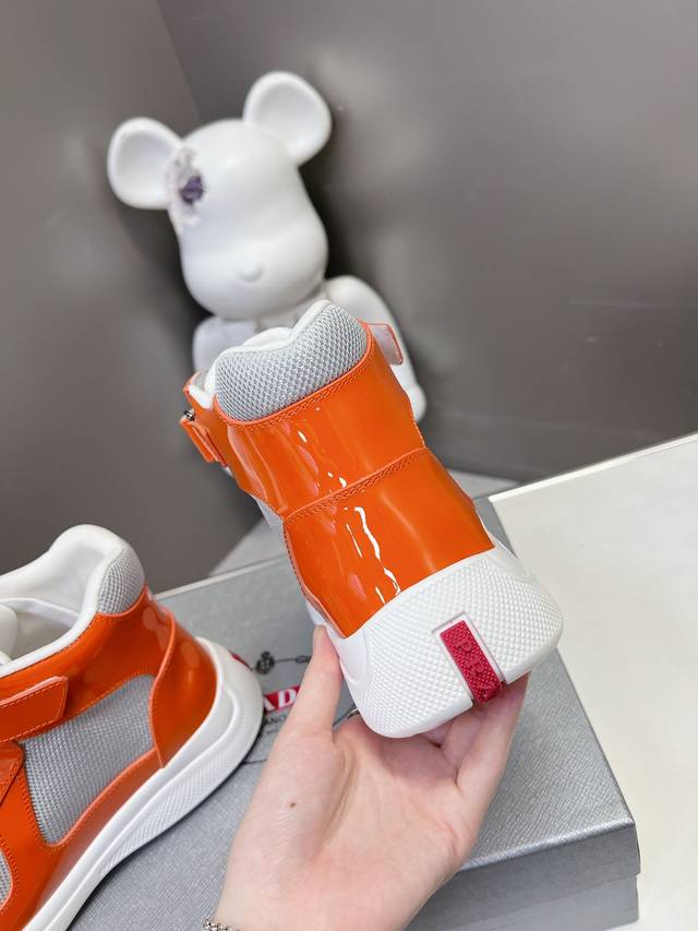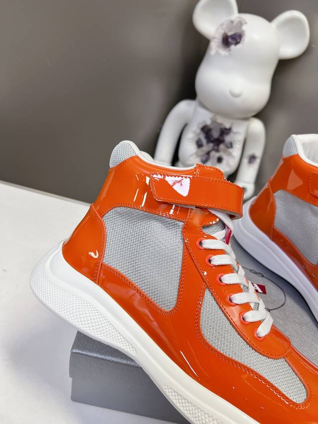 普拉达Prada顶级版高帮运动鞋 鞋面进口飞织面料拼接漆皮, 羊皮内里+牛皮踮脚, 耐磨防滑轻便大底, 男女同款: 码数:35-45码