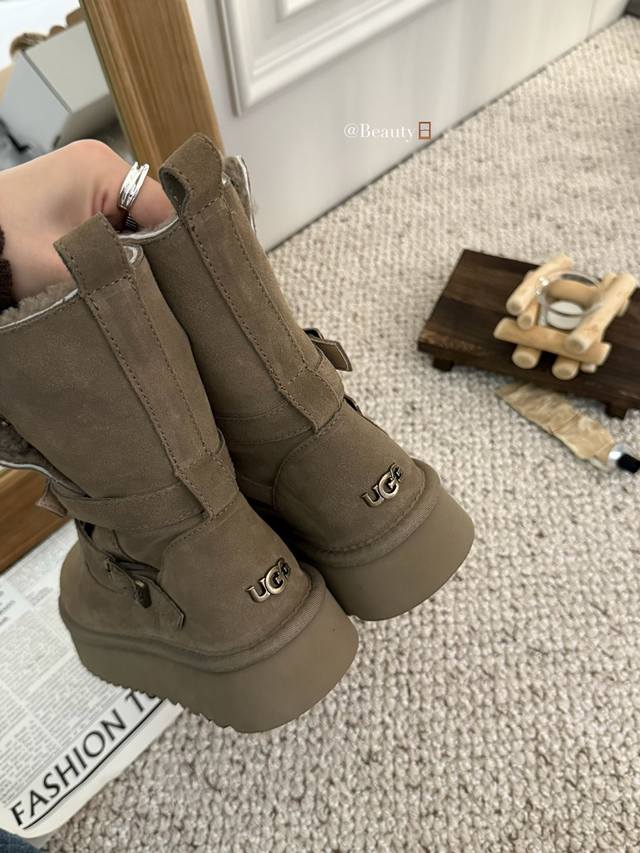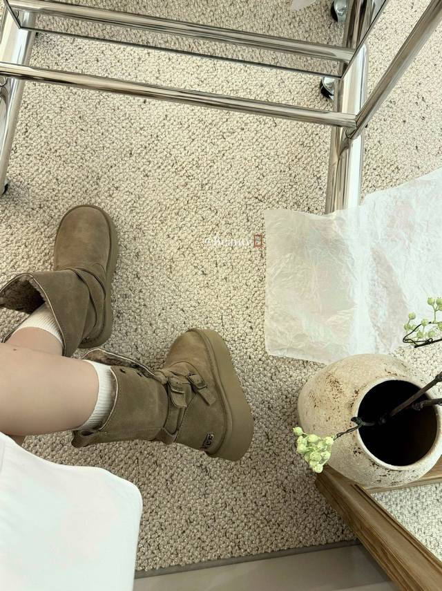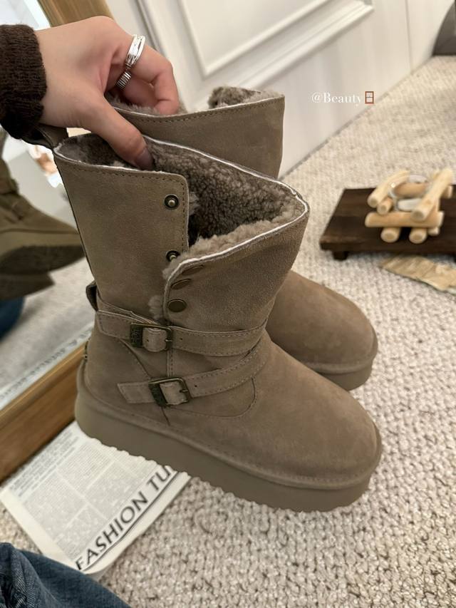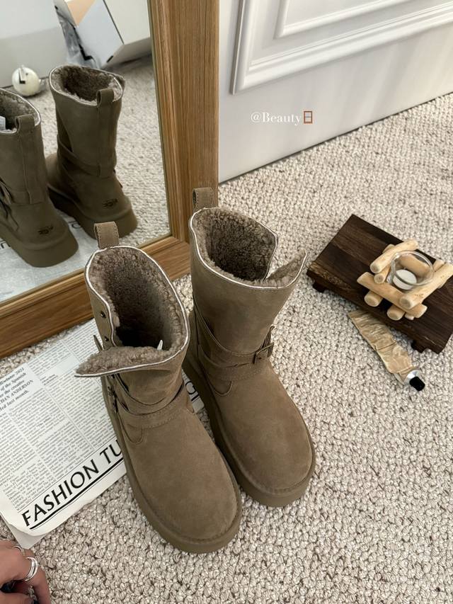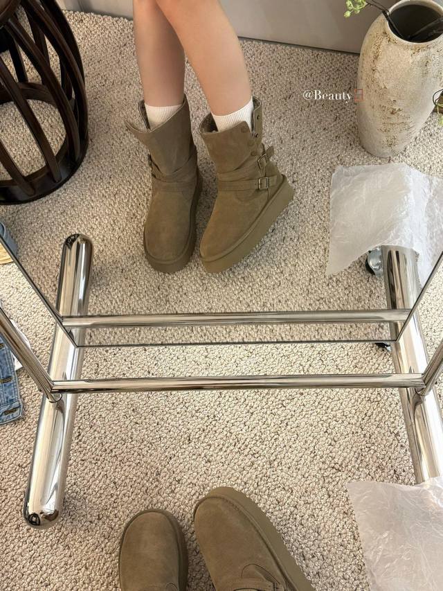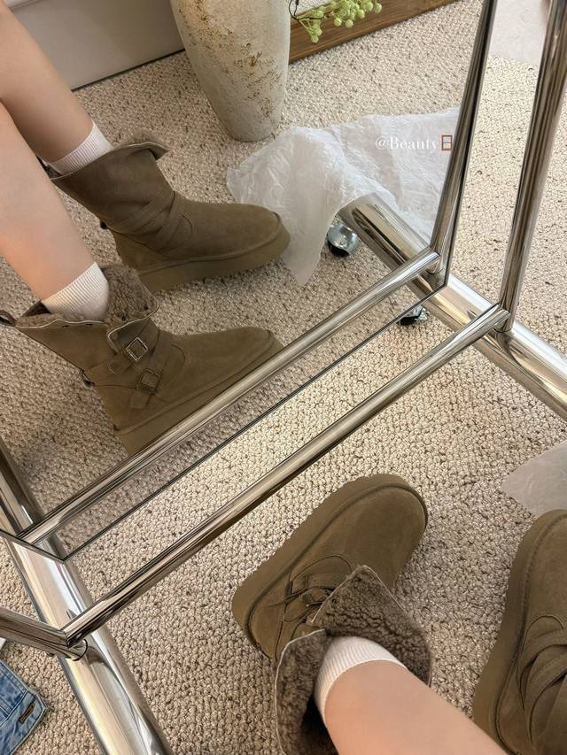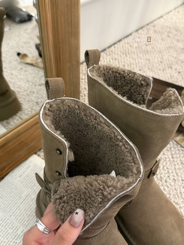 / 暖扣机车靴救命!这双Ugg骑士雪地靴也太会了吧!! 牛绒面革+内里羊毛一整个把冬日温暖拿捏住 皮带设计飒爽感拉满,厚底还悄悄显高 穿上它踩雪逛街都像踩在云朵上
