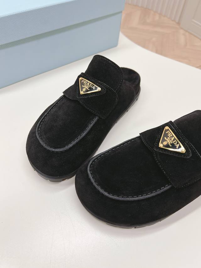 最新系列!Prada 普拉达 春夏新款凉鞋 三角扣面包包头半拖鞋 最新走秀系列 经典升级 舒适度与时髦度并存 每个颜色搭配都好看,设计搭配不同风格需求 鞋面:原