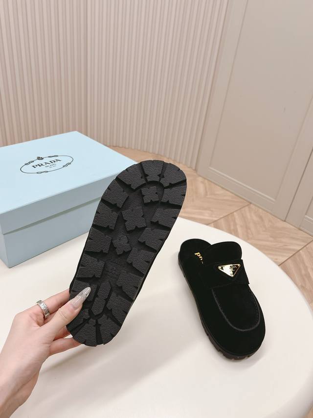 / 最新系列!Prada 普拉达 春夏新款凉鞋 三角扣面包包头半拖鞋 最新走秀系列 经典升级 舒适度与时髦度并存 每个颜色搭配都好看,设计搭配不同风格需求 鞋面:原