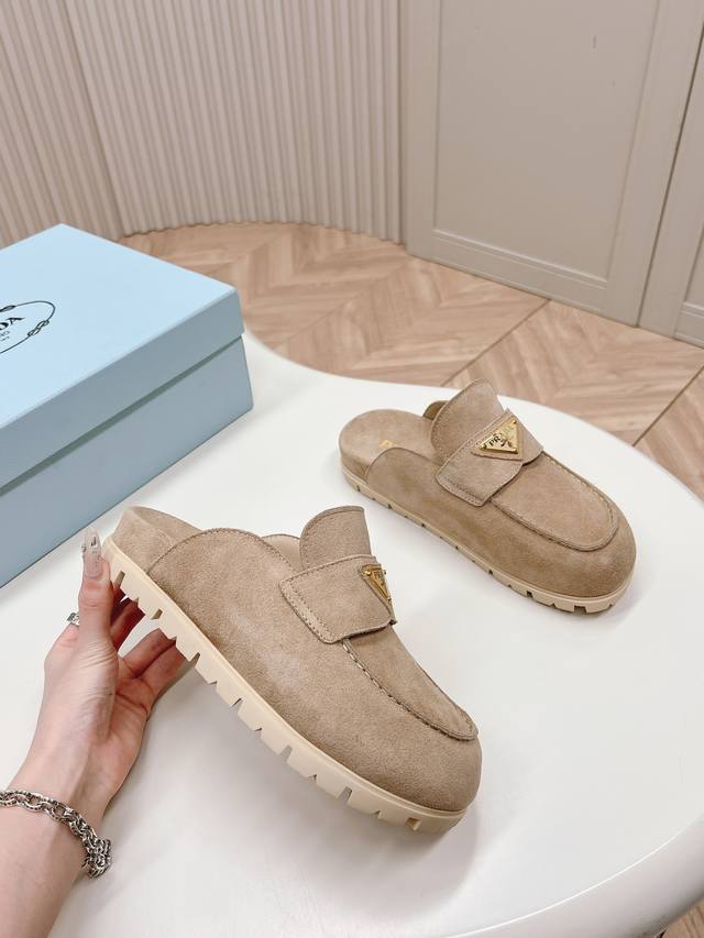 / 最新系列!Prada 普拉达 春夏新款凉鞋 三角扣面包包头半拖鞋 最新走秀系列 经典升级 舒适度与时髦度并存 每个颜色搭配都好看,设计搭配不同风格需求 鞋面:原