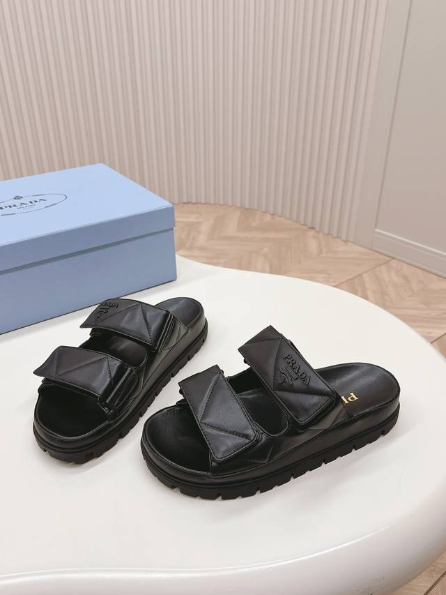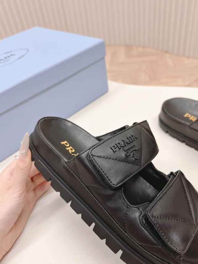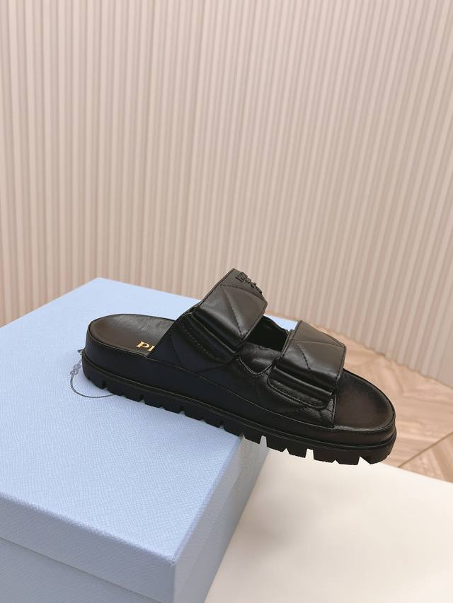 / 最新系列!Prada 普拉达 春夏新款凉鞋 拖鞋 最新走秀系列 经典升级 舒适度与时髦度并存 每个颜色搭配都好看,设计搭配不同风格需求 鞋面:原版定制牛皮 内里