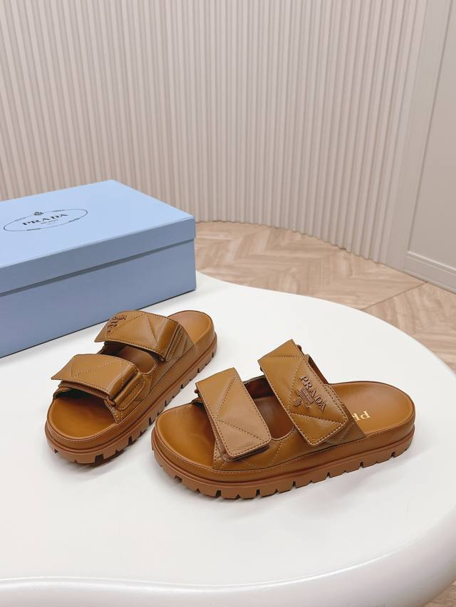 / 最新系列!Prada 普拉达 春夏新款凉鞋 拖鞋 最新走秀系列 经典升级 舒适度与时髦度并存 每个颜色搭配都好看,设计搭配不同风格需求 鞋面:原版定制牛皮 内里