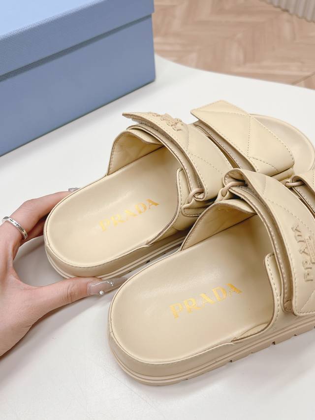 最新系列!Prada 普拉达 春夏新款凉鞋 拖鞋 最新走秀系列 经典升级 舒适度与时髦度并存 每个颜色搭配都好看,设计搭配不同风格需求 鞋面:原版定制牛皮 内里