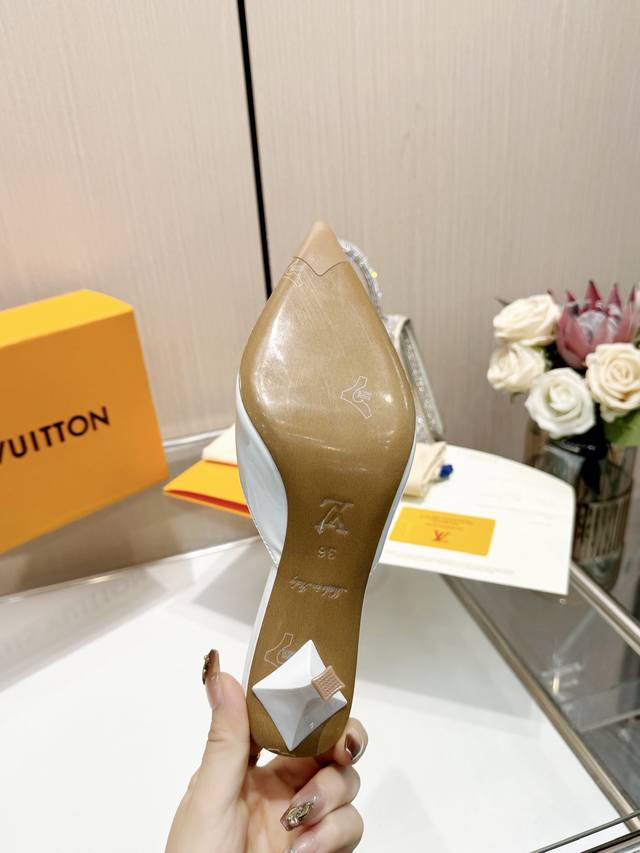 最新L家专柜最新走秀款凉鞋、官网系列同步更新、工厂P批P: 、完美楦型+Lv新元素扣子设计、女人味十足、高贵气质、原版倒模楦型,极致1:1形体,高端品质、进口高端面料呈现出精致质感! 面料:进口开边珠 进口牛漆皮 老花皮 内里:优质柔软羊皮里 垫脚:进口山羊皮 开模定制A级高密私模大底,奢华包装! 7公分面色烤漆跟 码数:35-40、 34、40、41定制不退换