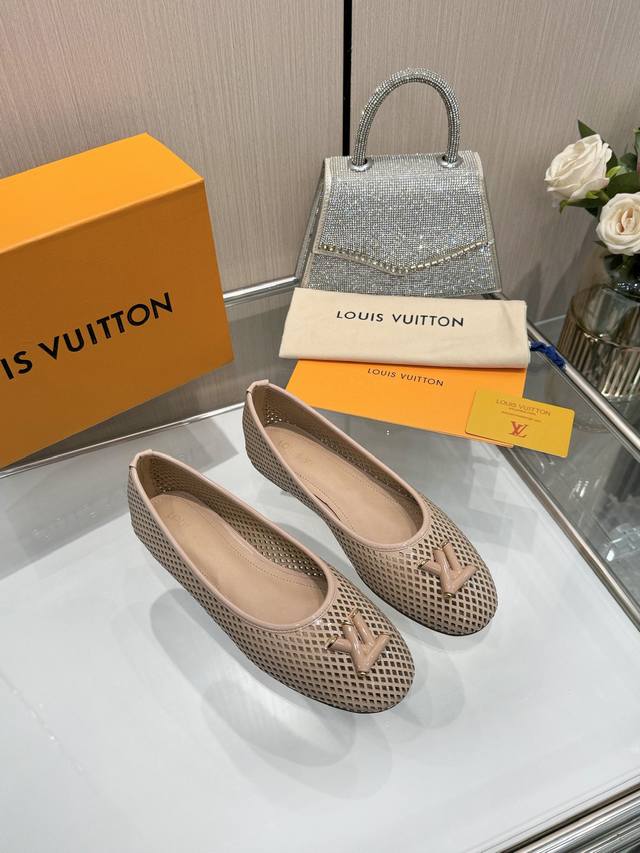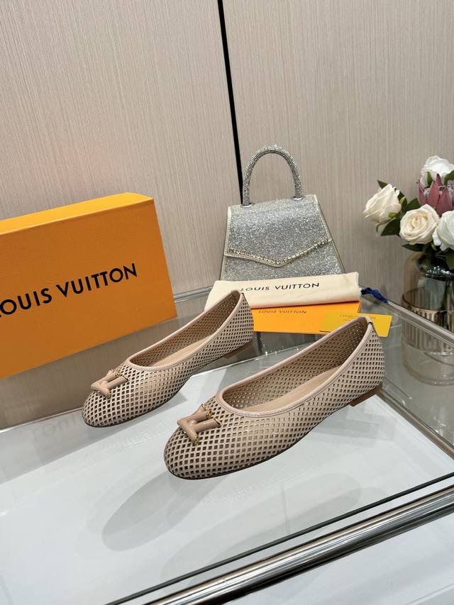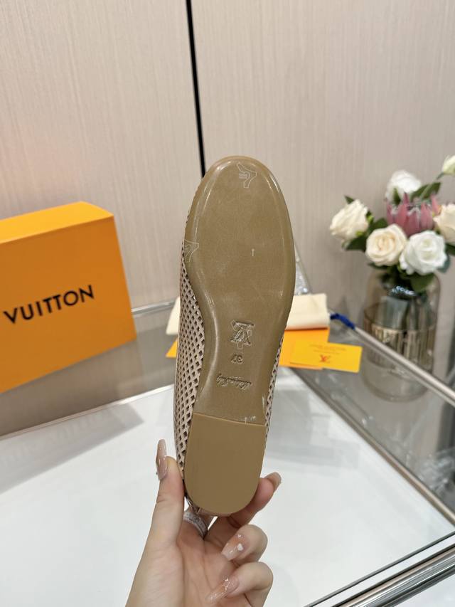 最新L家专柜最新走秀款平底镂空鞋、实体系列同步更新、工厂P批P: 、完美楦型+电镀扣子、领口包边、整只鞋面冲空、工艺比较复杂、平底设计舒适、走路不累脚、原版倒模