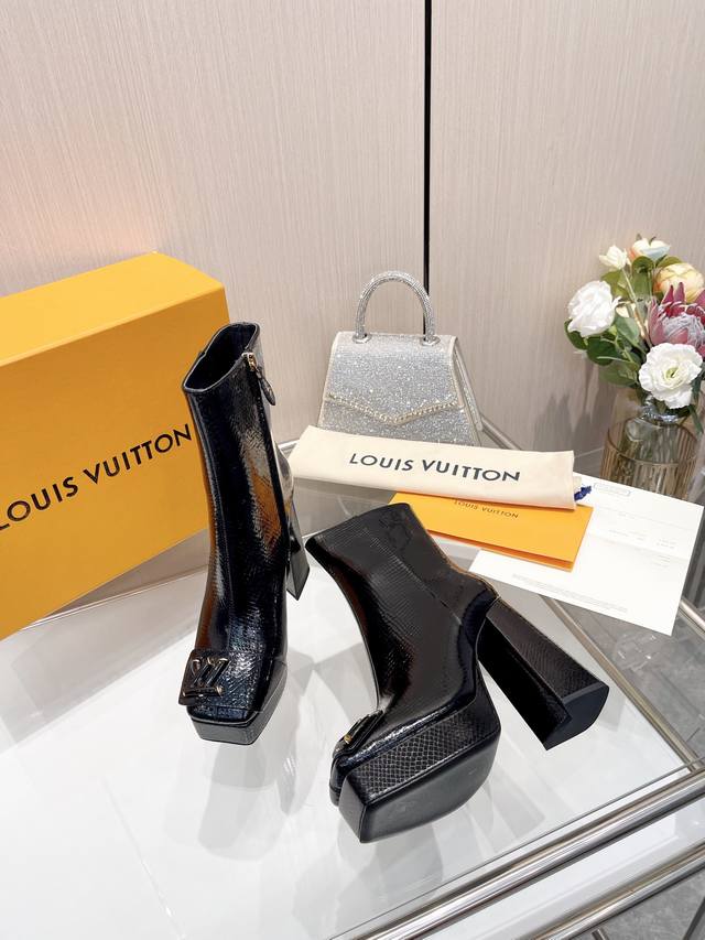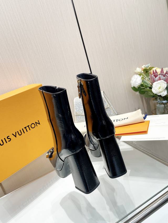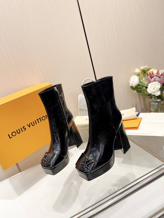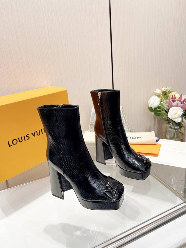 / 最新L家最新官网系列走秀款6寸短靴、同步更新、工厂P批P: 、完美楦型+跟扣设计,Lv新元素扣子、高贵气质、高水台设计、走路不累脚、原版倒模楦型,极致1:1形体